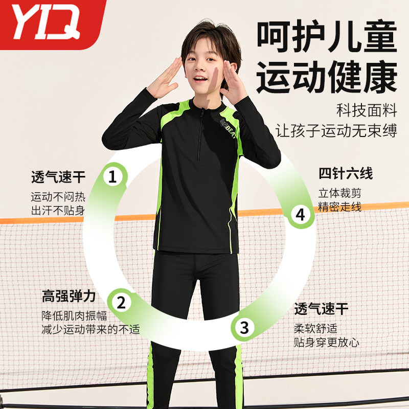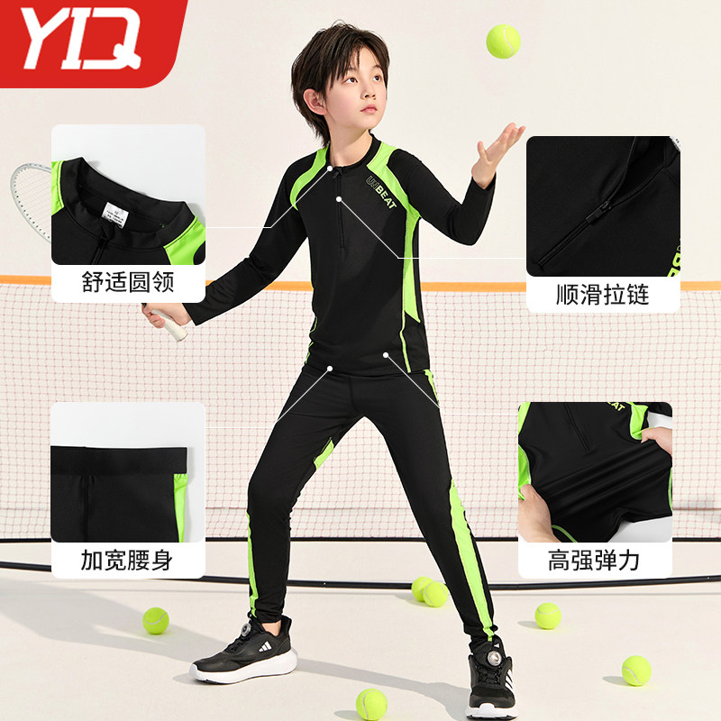 儿童紧身衣训练服长袖男童篮球足球速干衣套装秋冬跑步运动打底衫