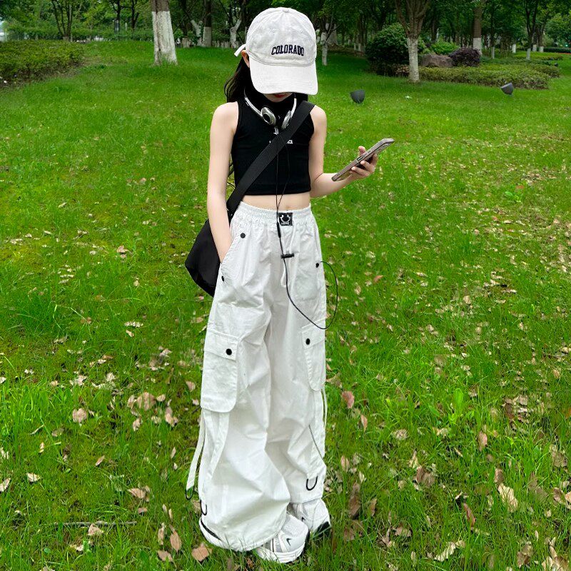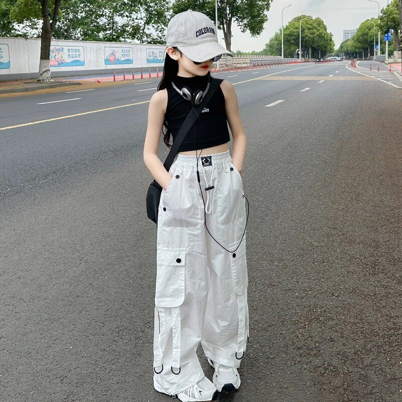 春夏女童工装裤儿童裤子白色阔腿裤2026新款女大童春秋装休闲长裤