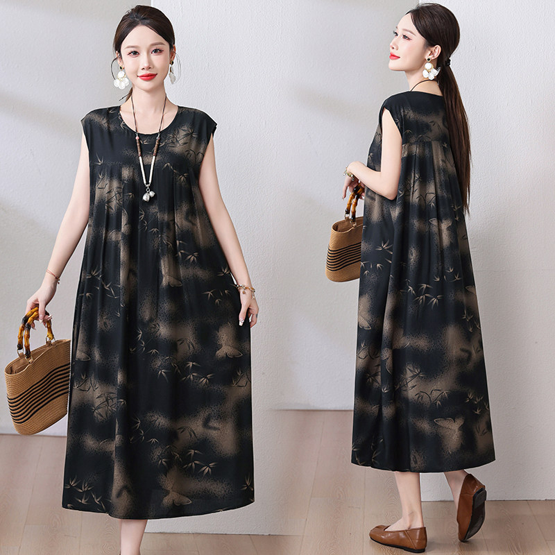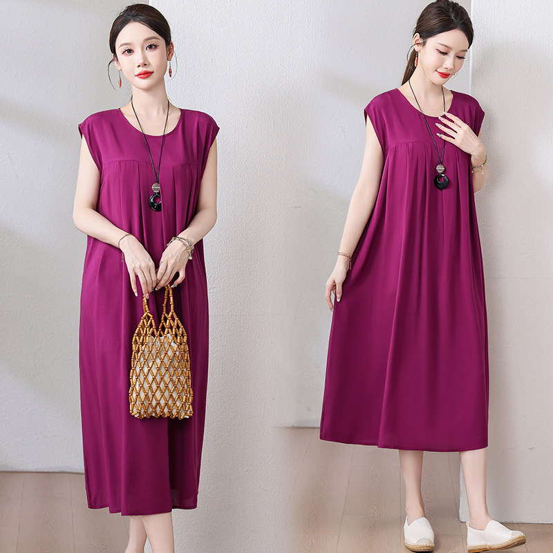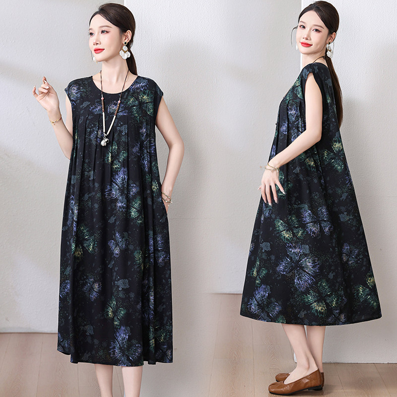 2025新款夏天高端棉绸连衣裙宽松中年气质妈妈睡裙大码宽松显瘦