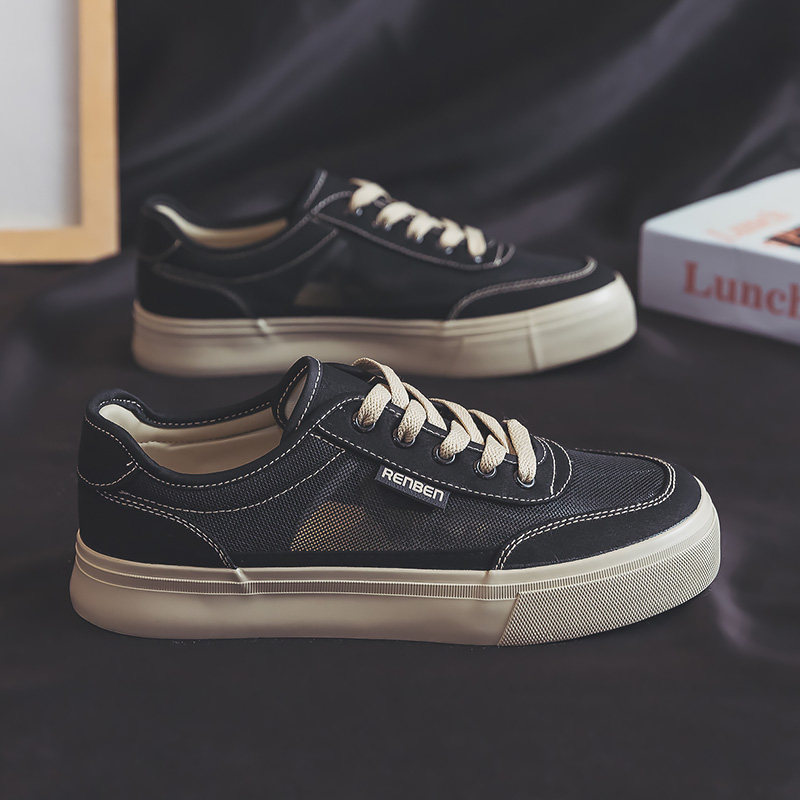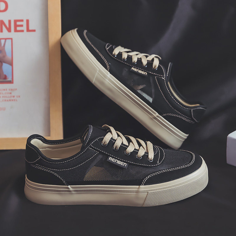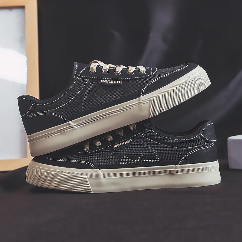 人本网面帆布鞋男2026新款夏透气男鞋百搭黑色网眼网鞋运动休闲鞋