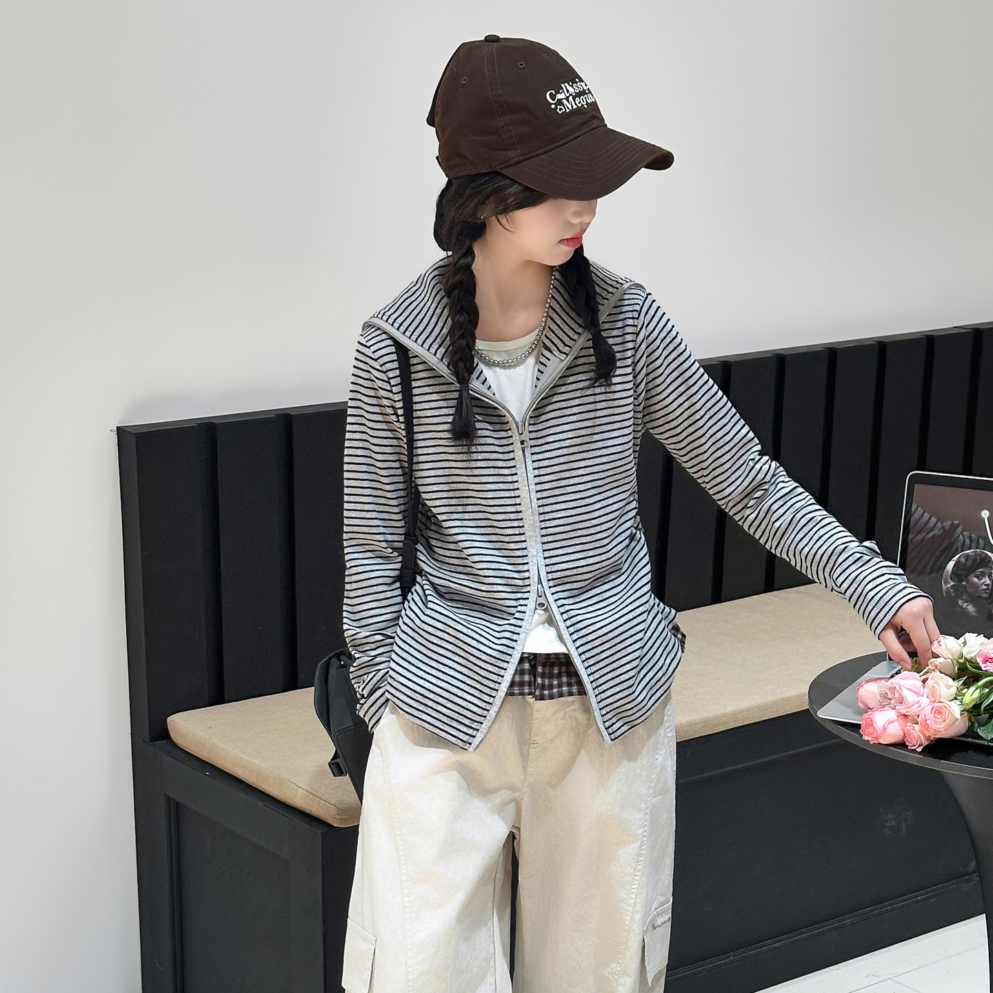 女童春装外套2026新款青少年儿童条纹开衫女孩洋气时髦上衣中大童