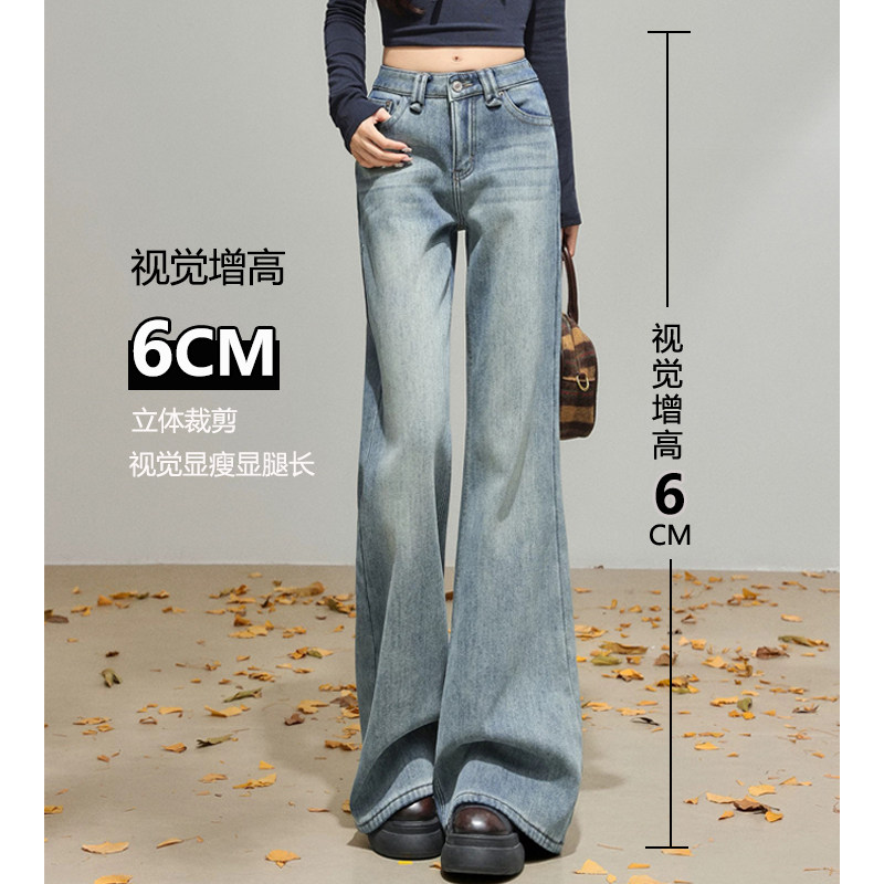 复古蓝不贴腿微喇牛仔裤女2026新款夏季薄款浅色高腰垂感直筒裤子