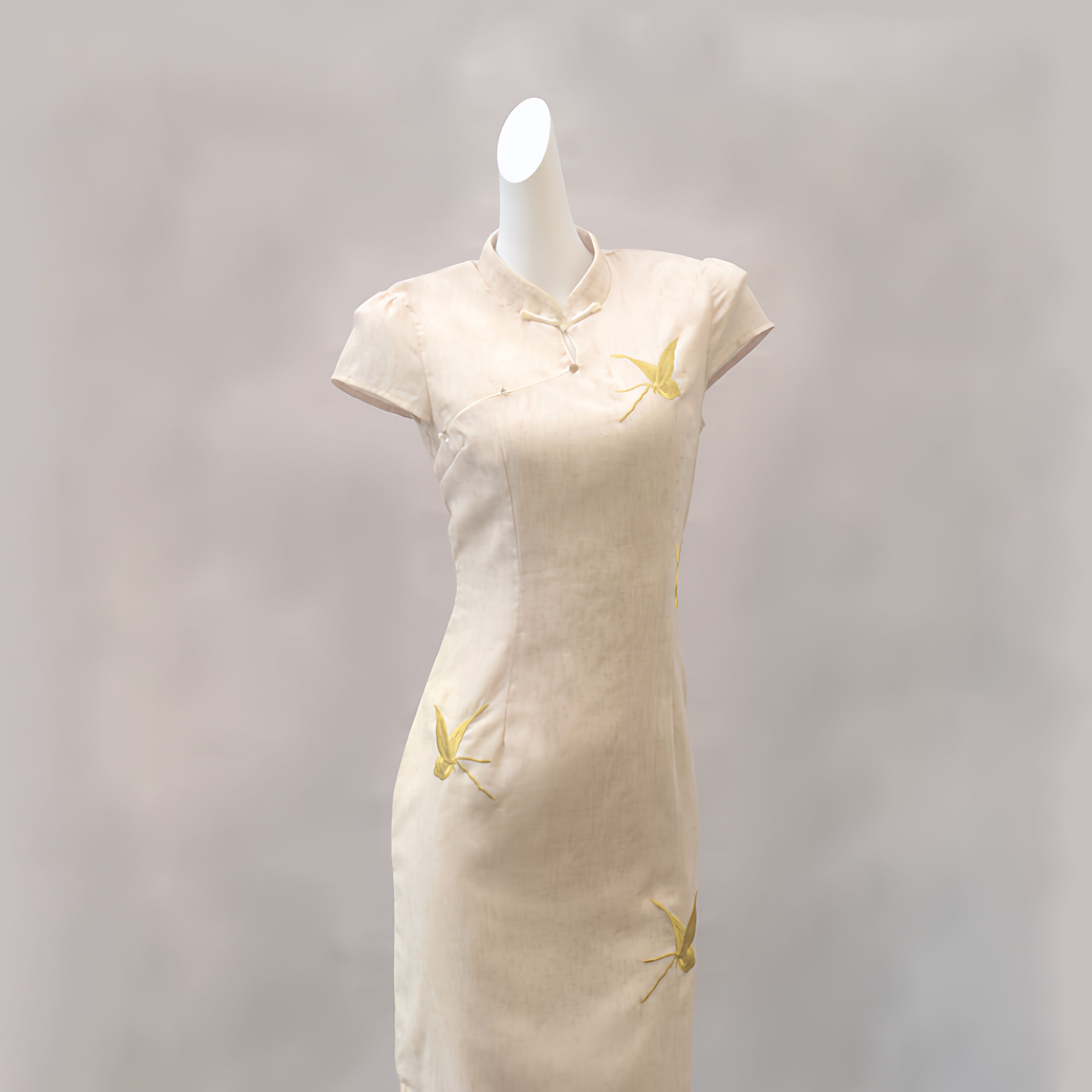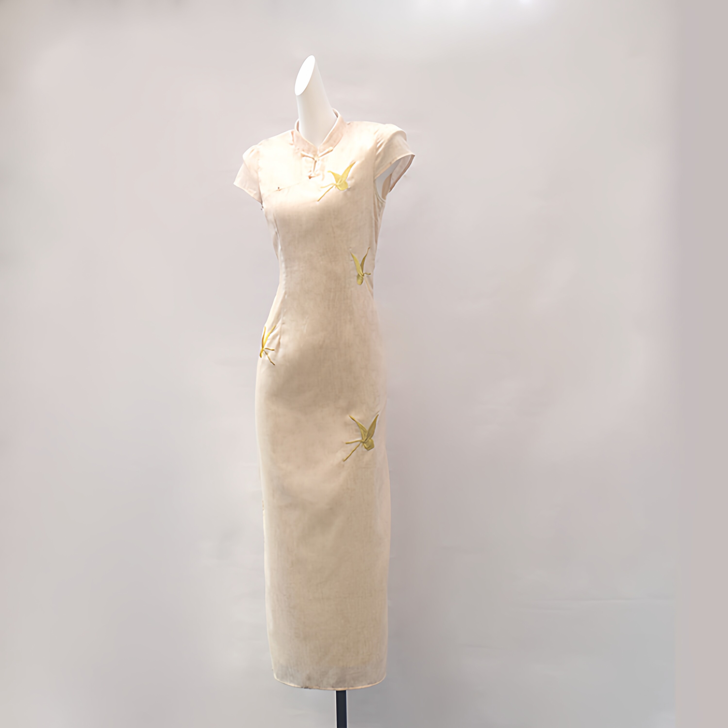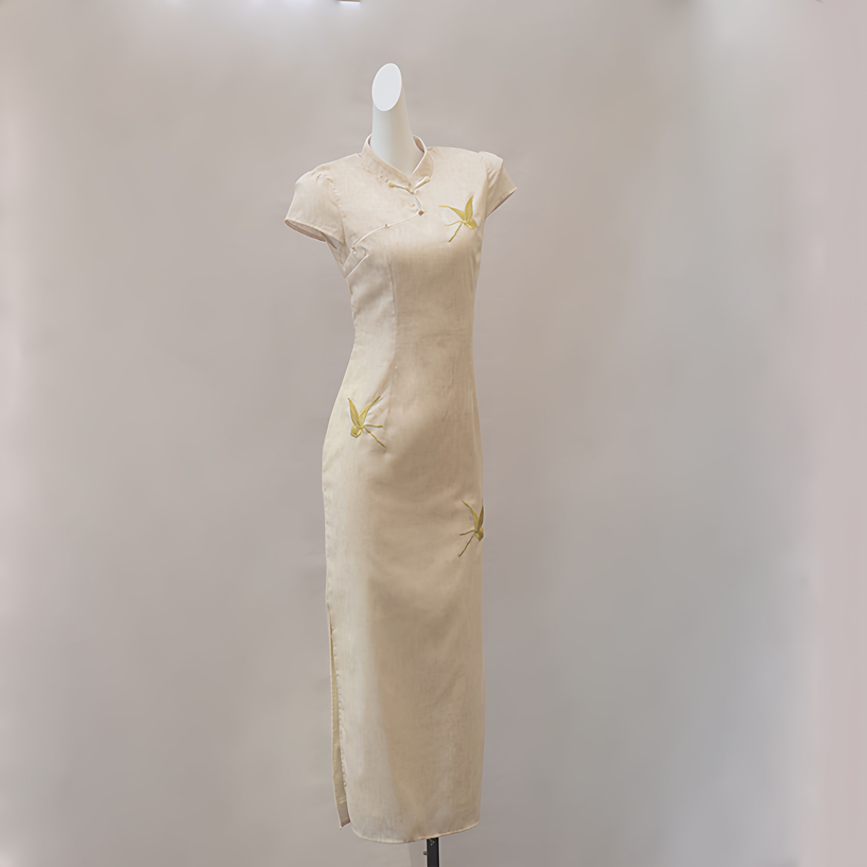 新中式亚麻复古改良旗袍女日常中长裙蝴蝶刺绣高级感春夏连衣裙