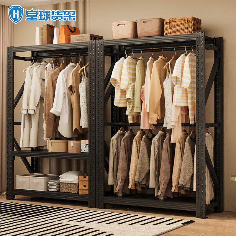 货架衣柜防尘帘开放式衣帽间卧室简易角钢衣架家用落地多层置物架