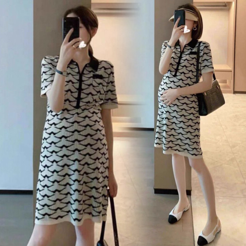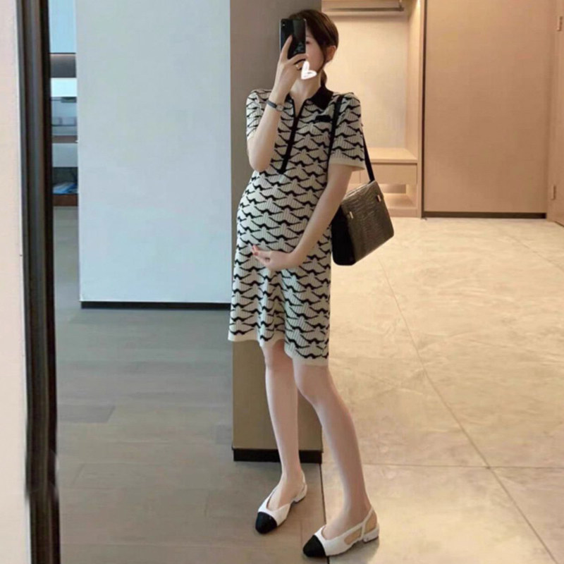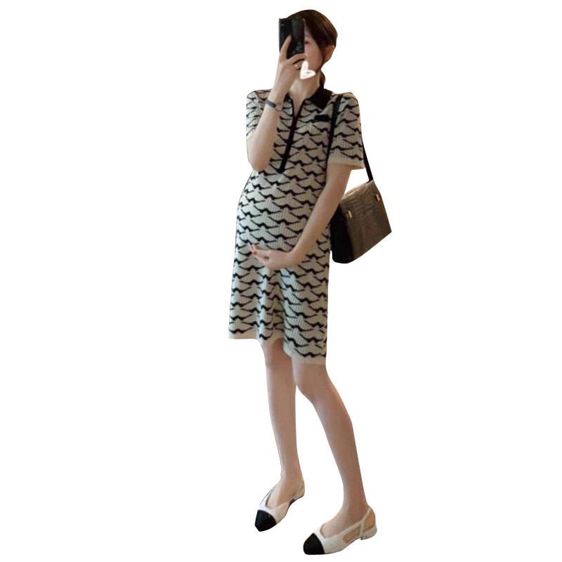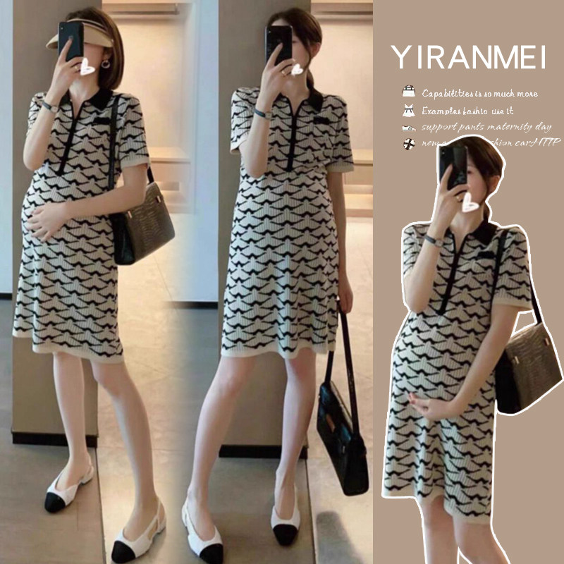 夏季气质名媛孕妇裙高级感别致小香风polo领减龄显瘦孕妇连衣裙女