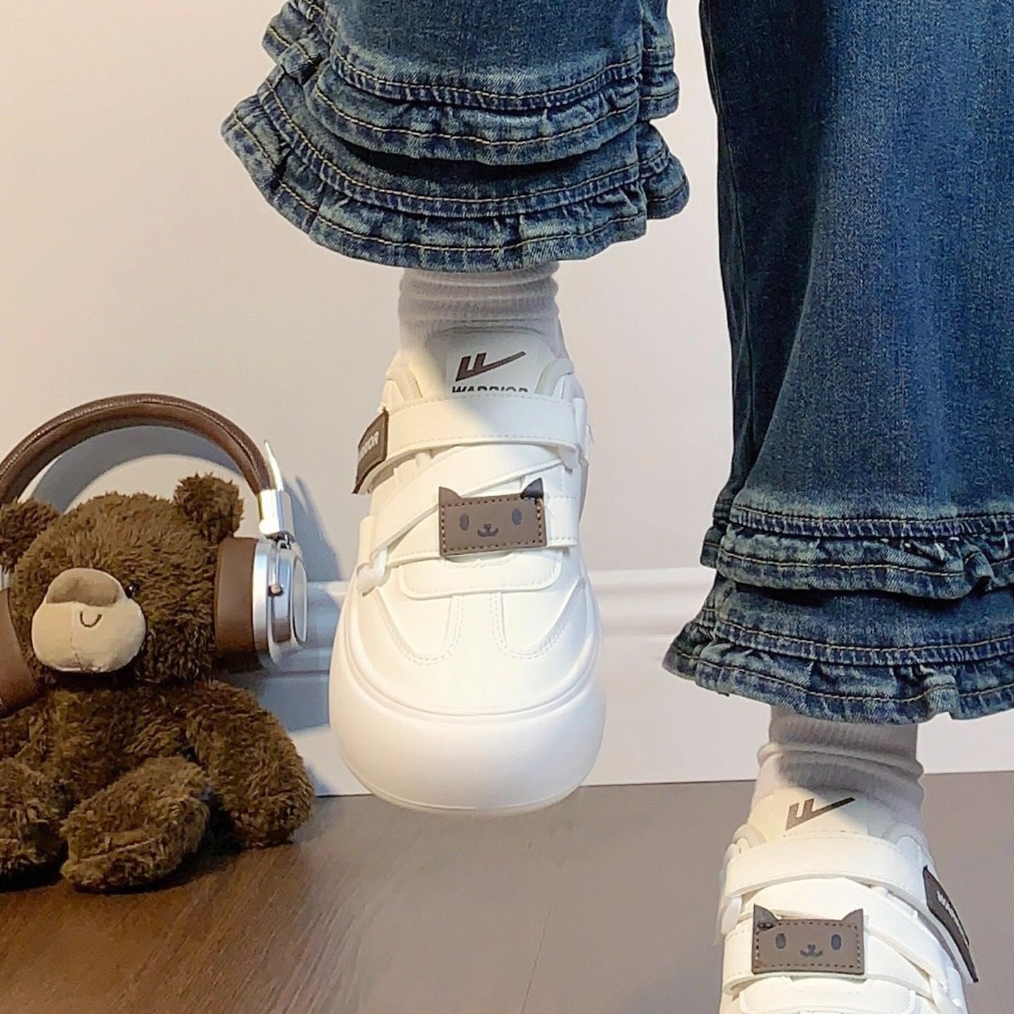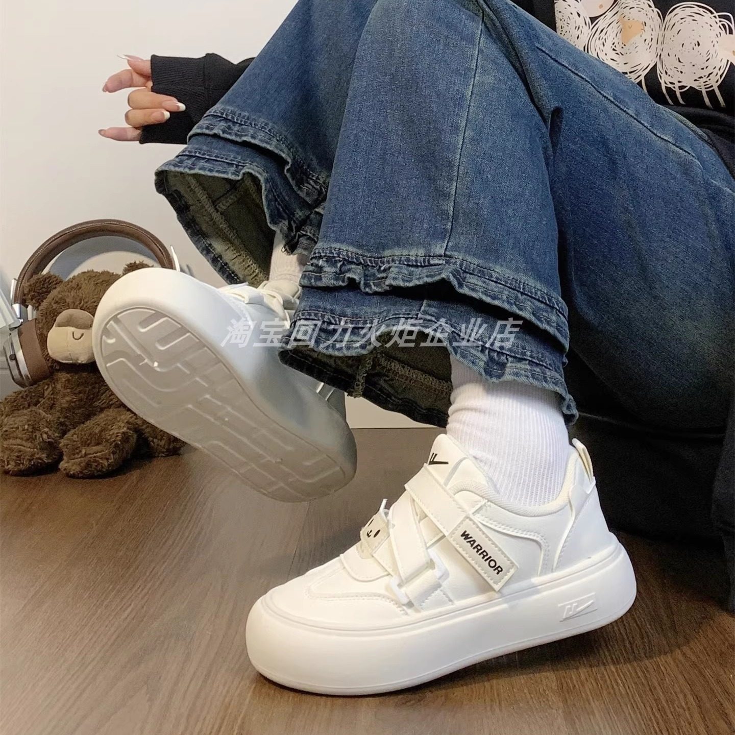回力圆头可爱面包小白鞋子女2026春季新款百搭学生厚底魔术贴板鞋