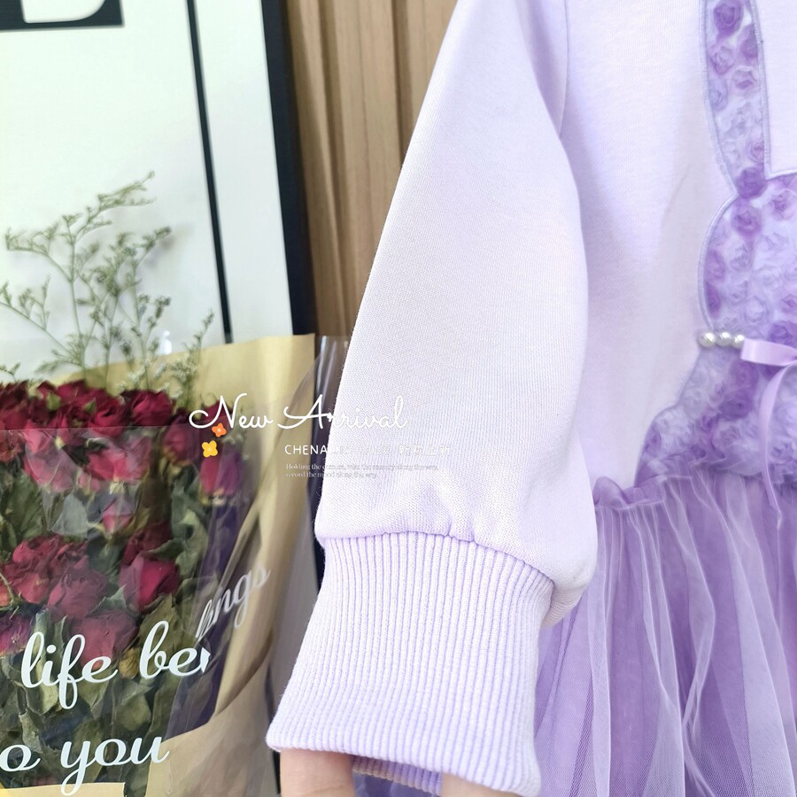 女童富家千金感裙子2025新款甜美可爱风紫色连衣裙长袖公主蓬蓬裙