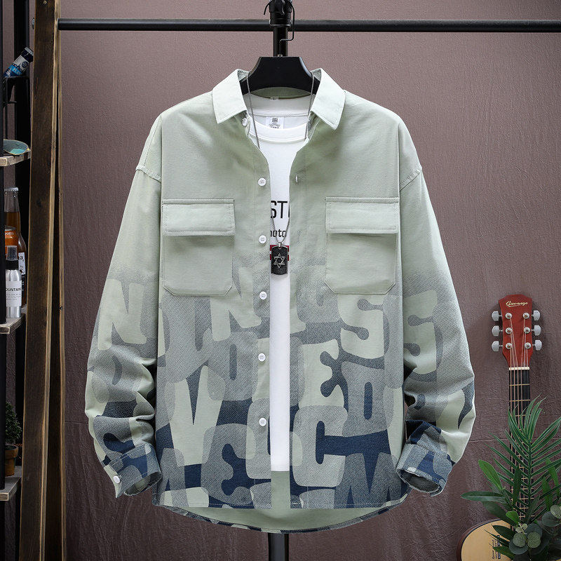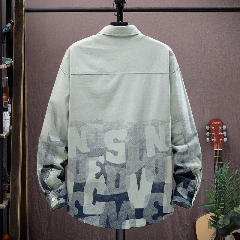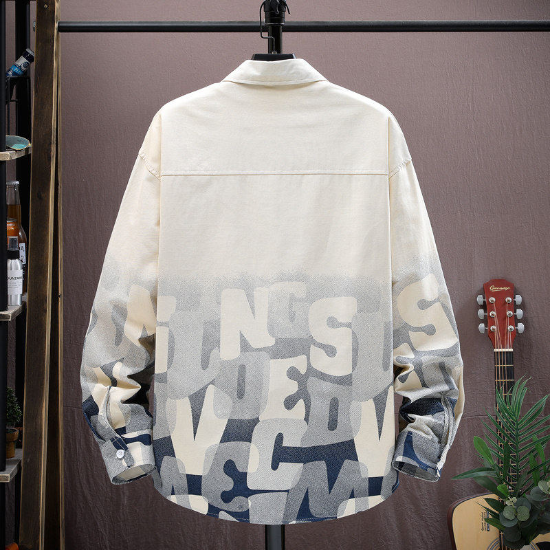 渐变衬衫男款长袖休闲衬衣潮流印花字母2026新款春季上衣春装
