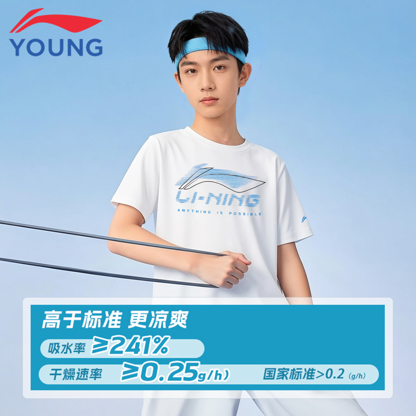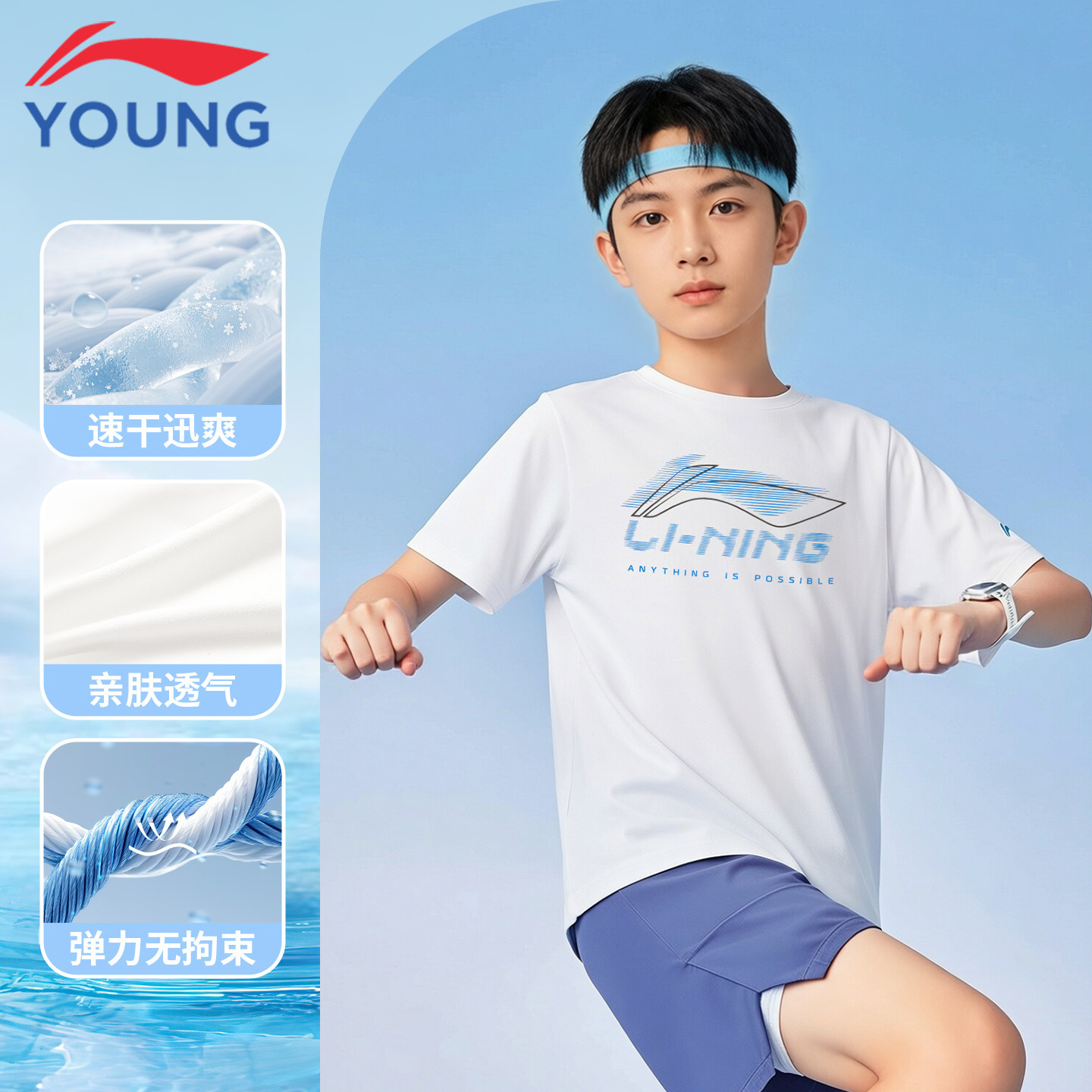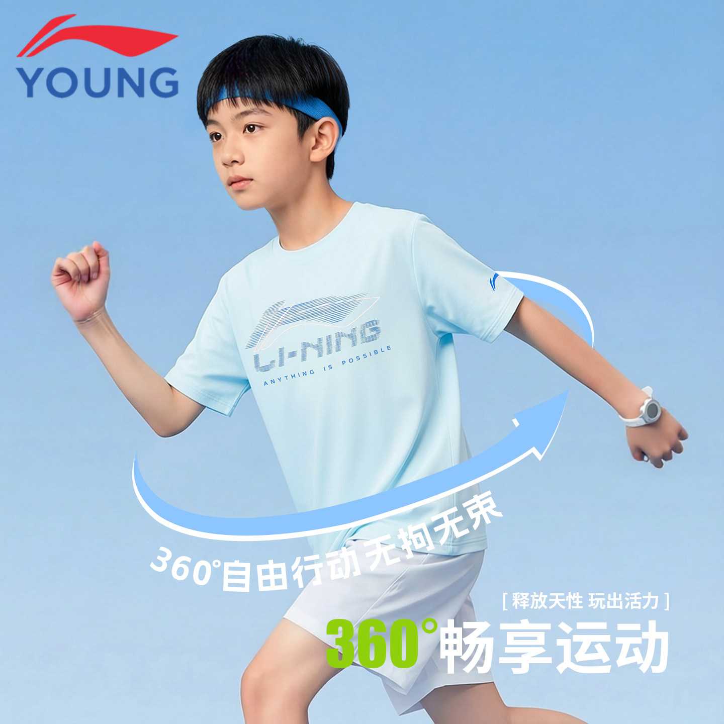 李宁儿童短袖T恤男大童2026夏季新款青少年宽松透气速干运动半袖