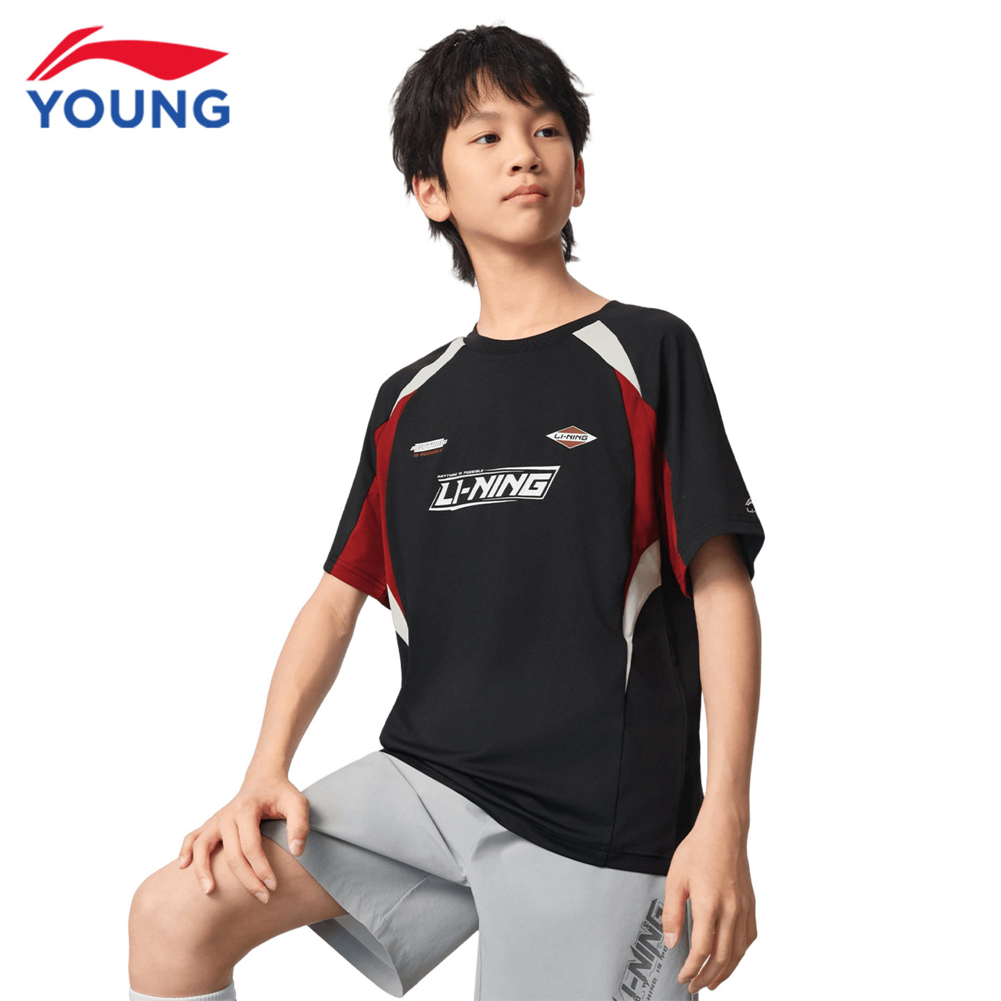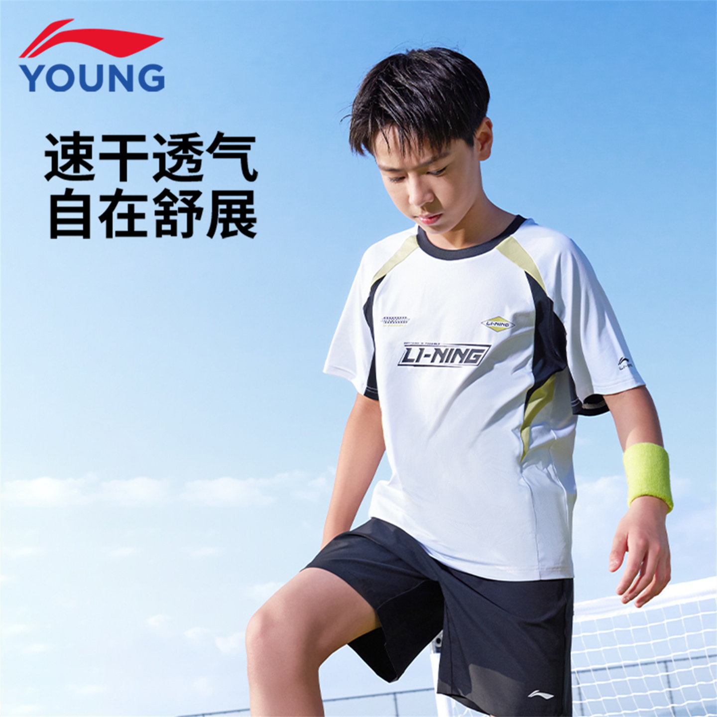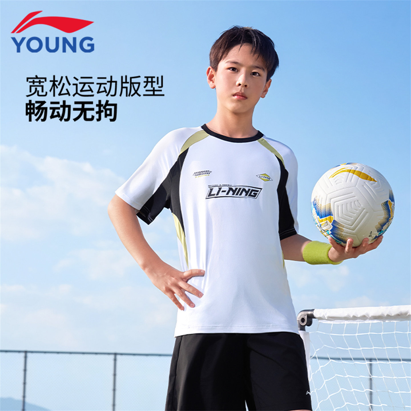 李宁儿童速干短袖T恤男童2026夏季新款青少年吸汗宽松弹力足球衣