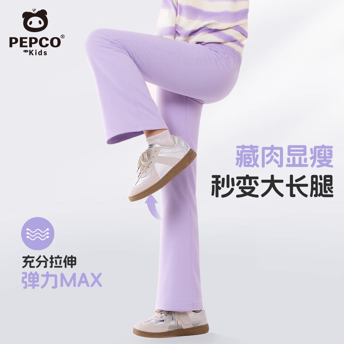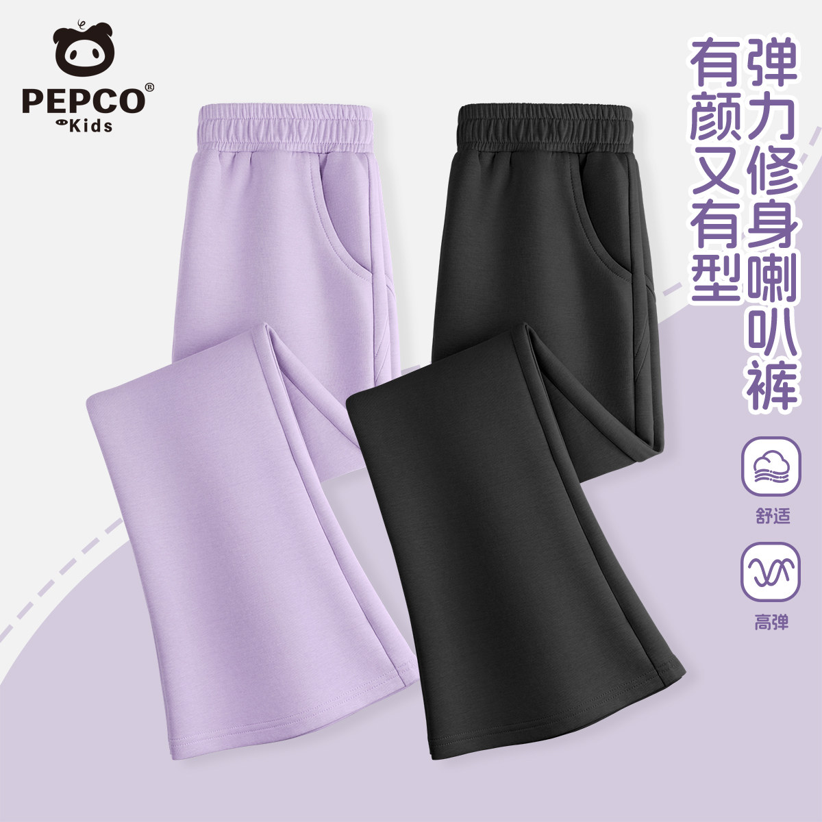 小猪班纳女童裤子2026新款春季小女孩运动休闲长裤儿童黑色微喇裤