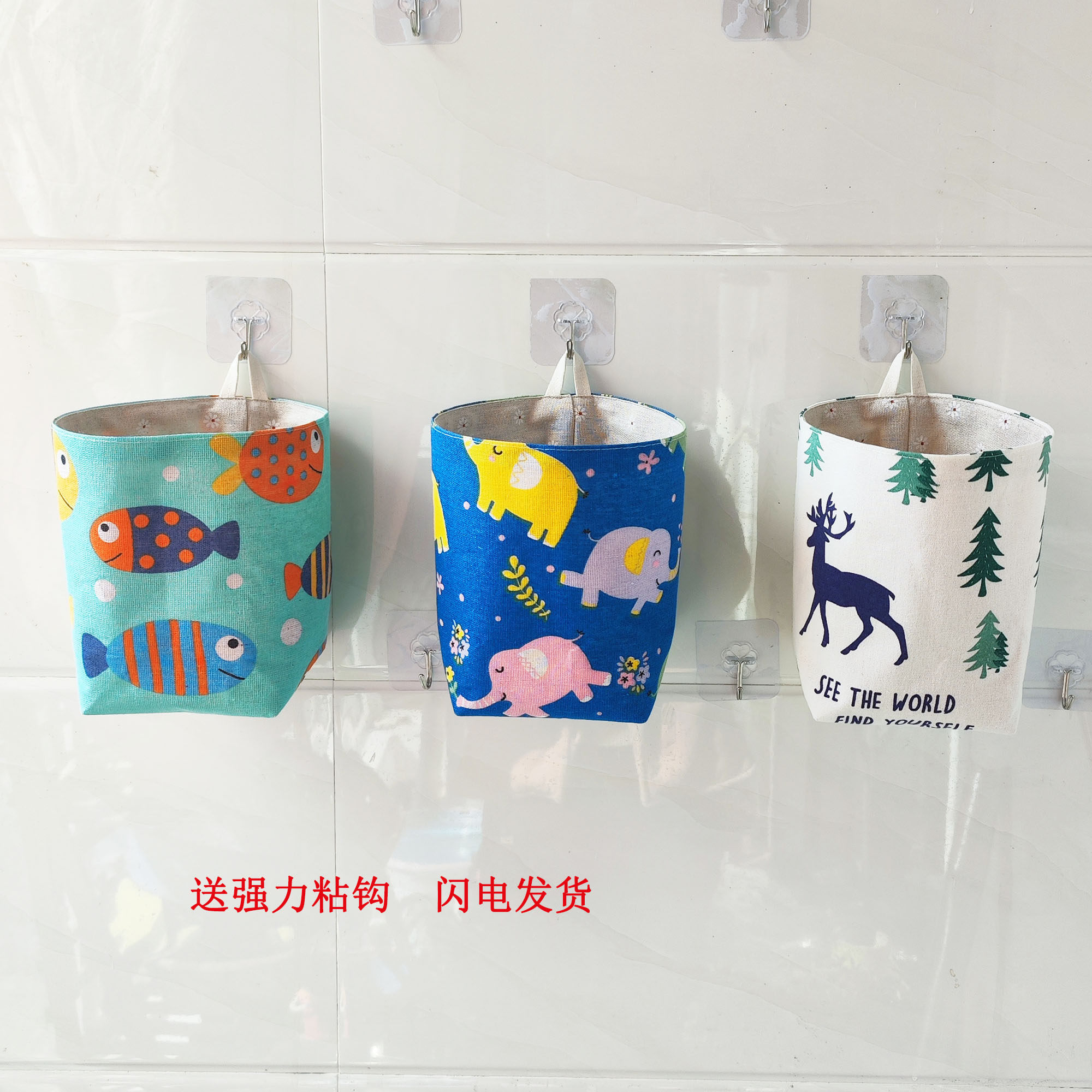 买二送一挂袋帆布收纳袋小挂兜杂物挂式收纳袋幼儿园卫生纸挂袋