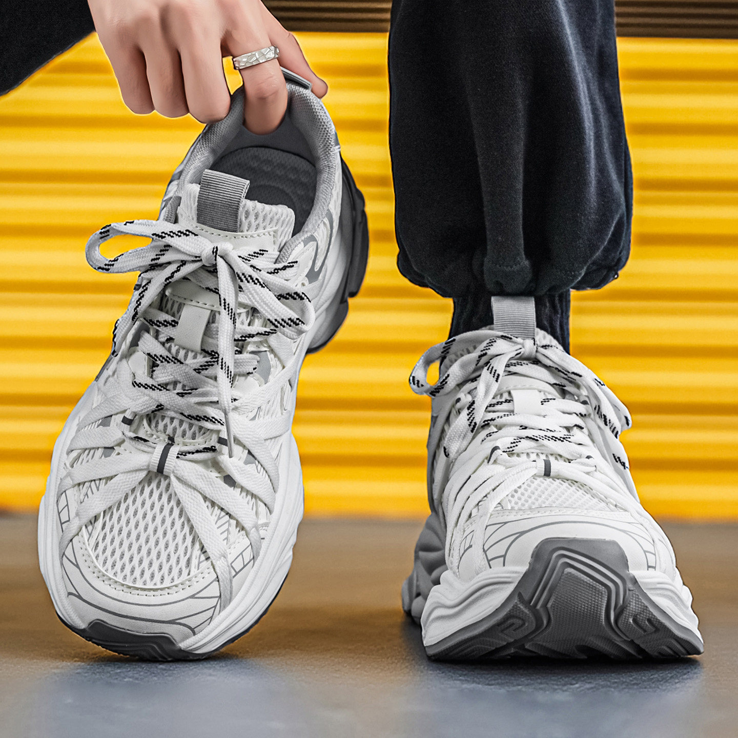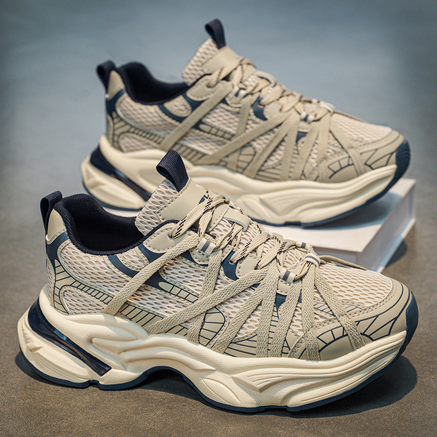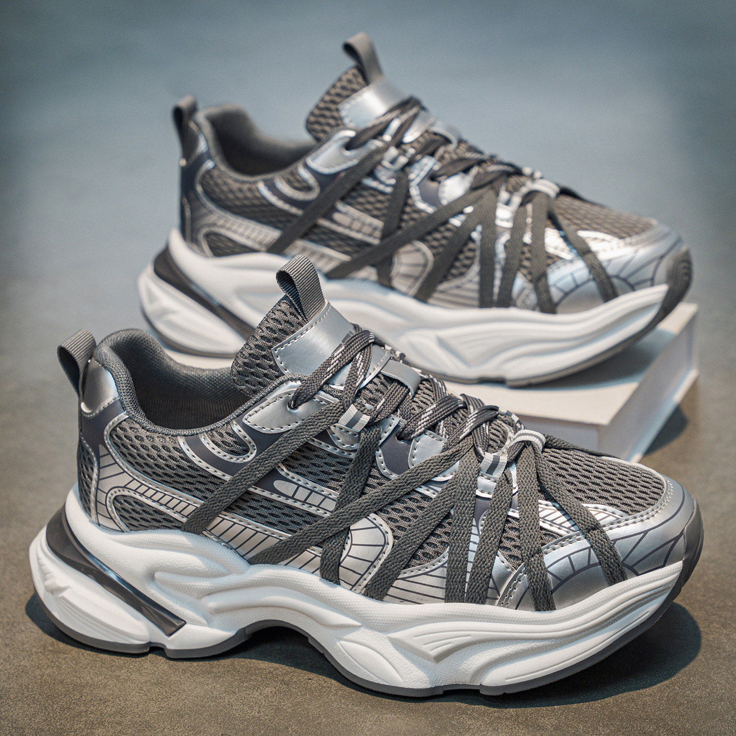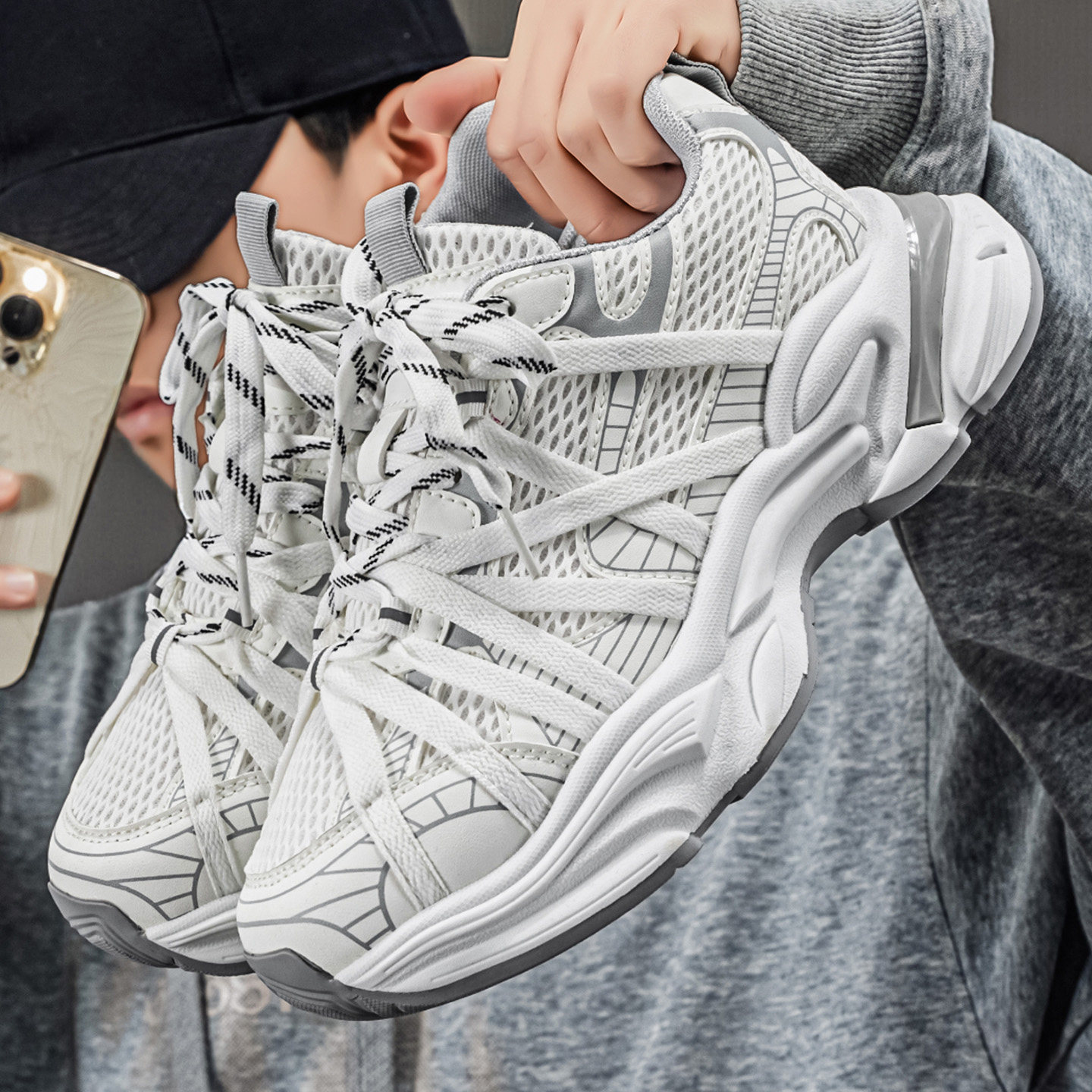 潮牌男鞋2026新款夏季网面透气休闲运动鞋青少年厚底增高老爹潮鞋