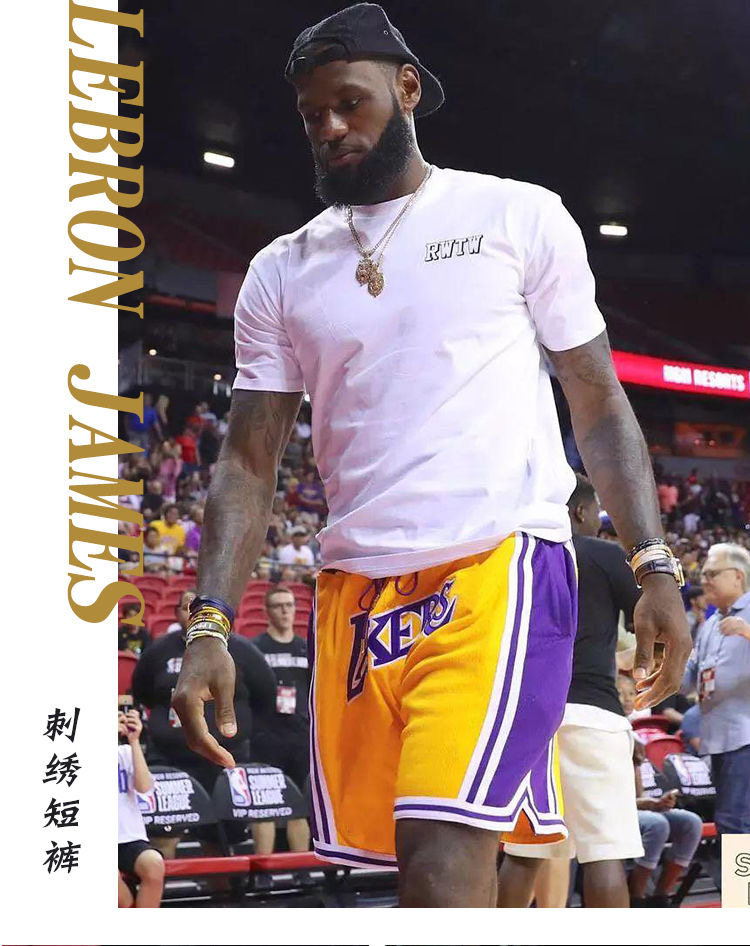 詹姆斯球裤湖人科比宽松短裤美式刺绣运动五分健身训练蓝球裤男女