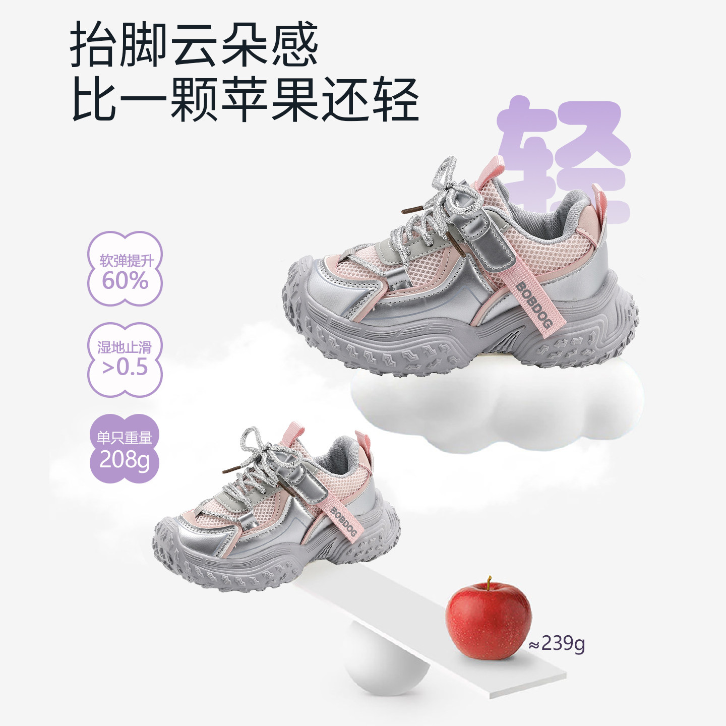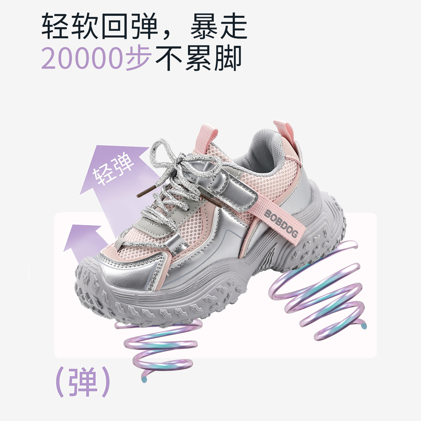 巴布豆真皮儿童运动鞋2026春秋季男童老爹鞋女童鞋透气休闲跑步鞋