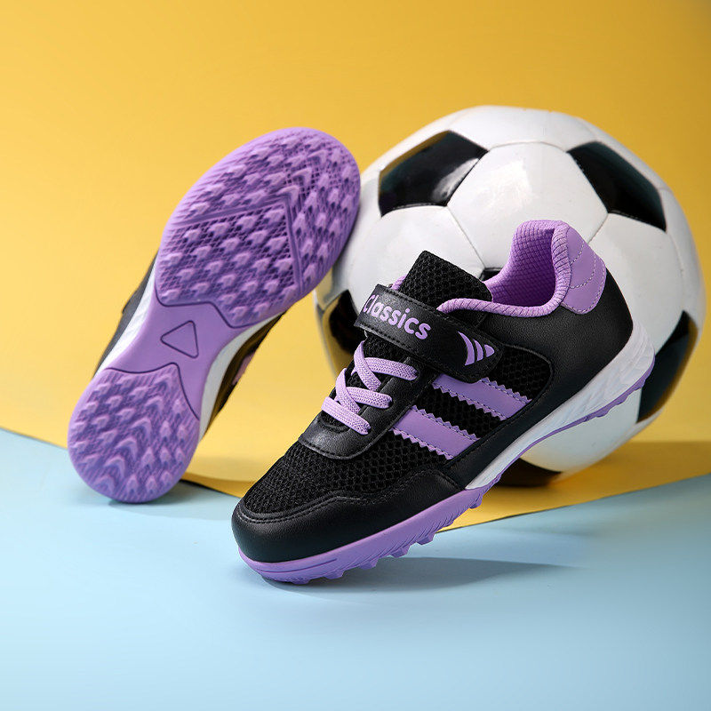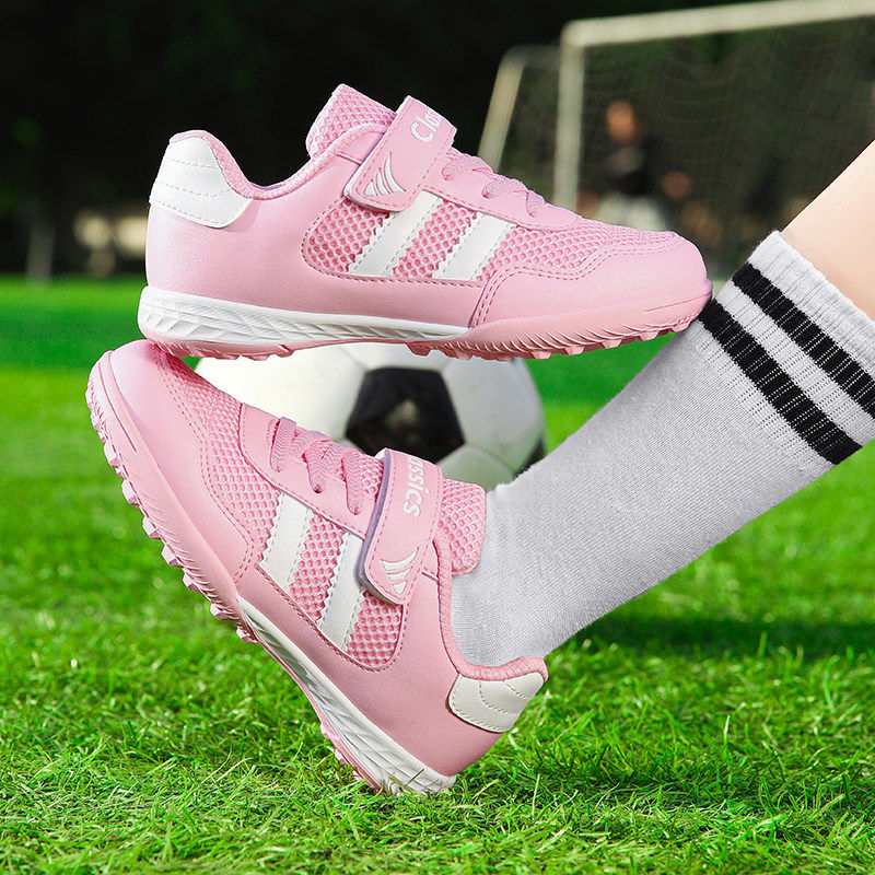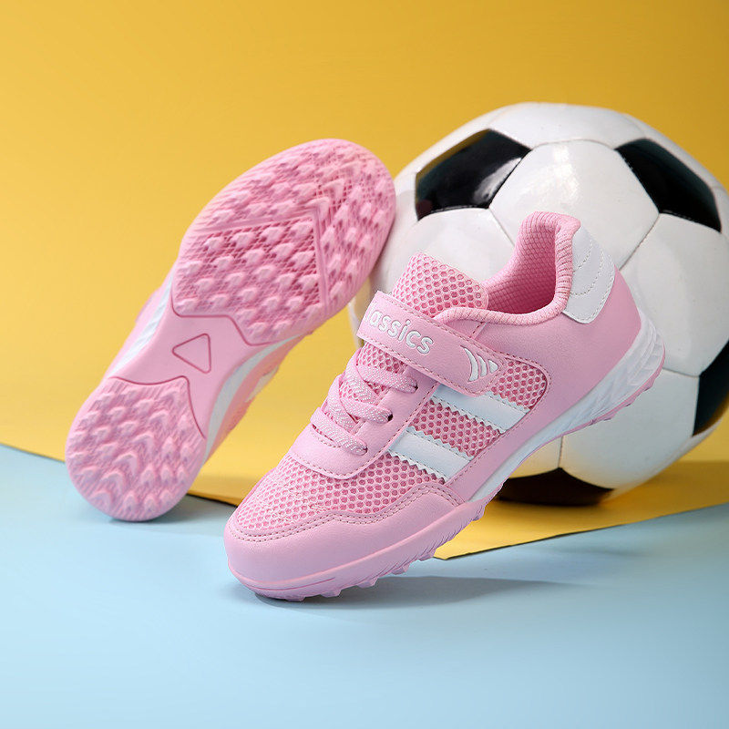 夏季透气网面足球鞋女童儿童小学生专用训练鞋女孩碎钉魔术贴女款