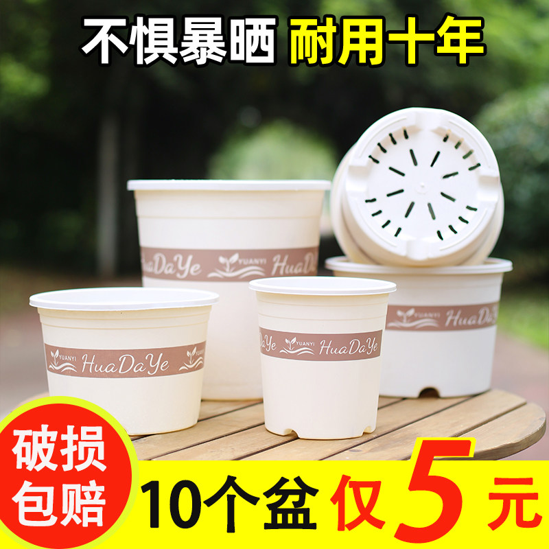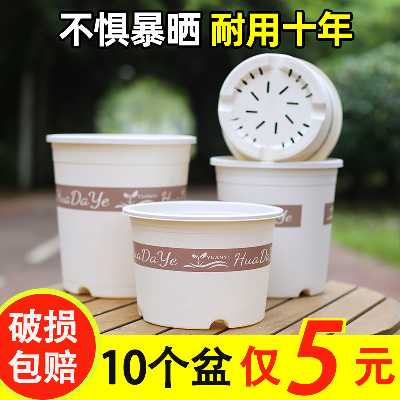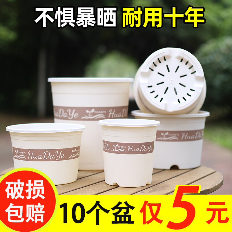 大号加厚控根透气花盆大口径耐用环保树脂三代白色加仑盆阳台浇水