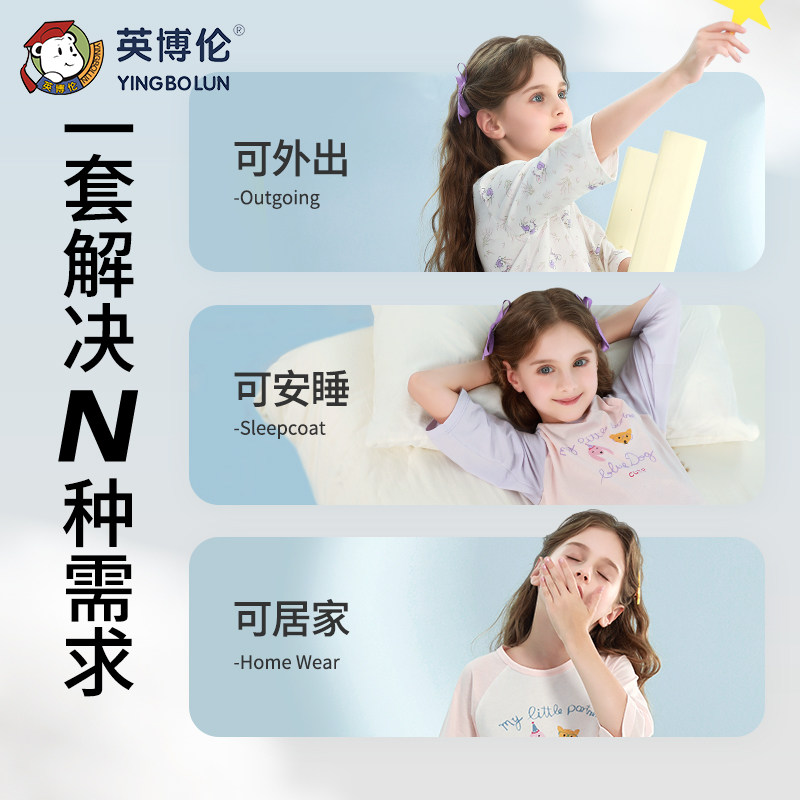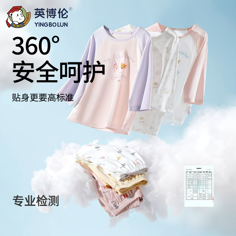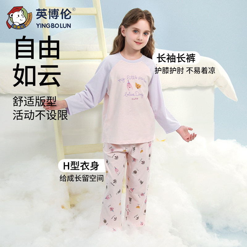 英博伦女童睡衣春夏中大童小女孩纯棉长袖长裤套装儿童家居服薄款