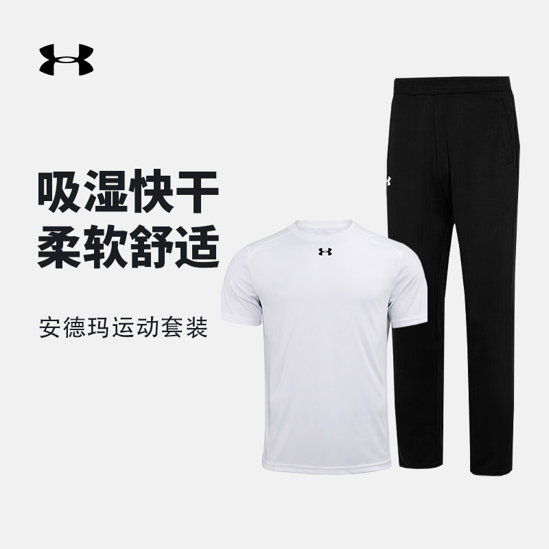 安德玛运动套装男装快干短袖透气休闲跑步训练长裤健身服两件套