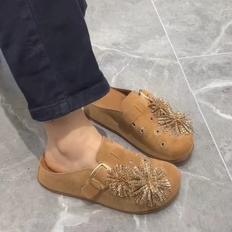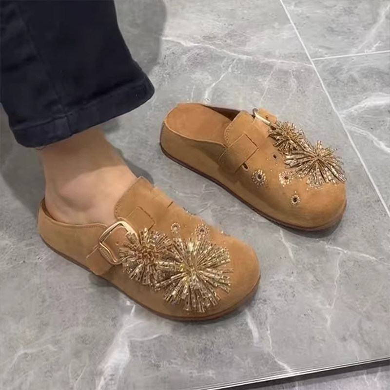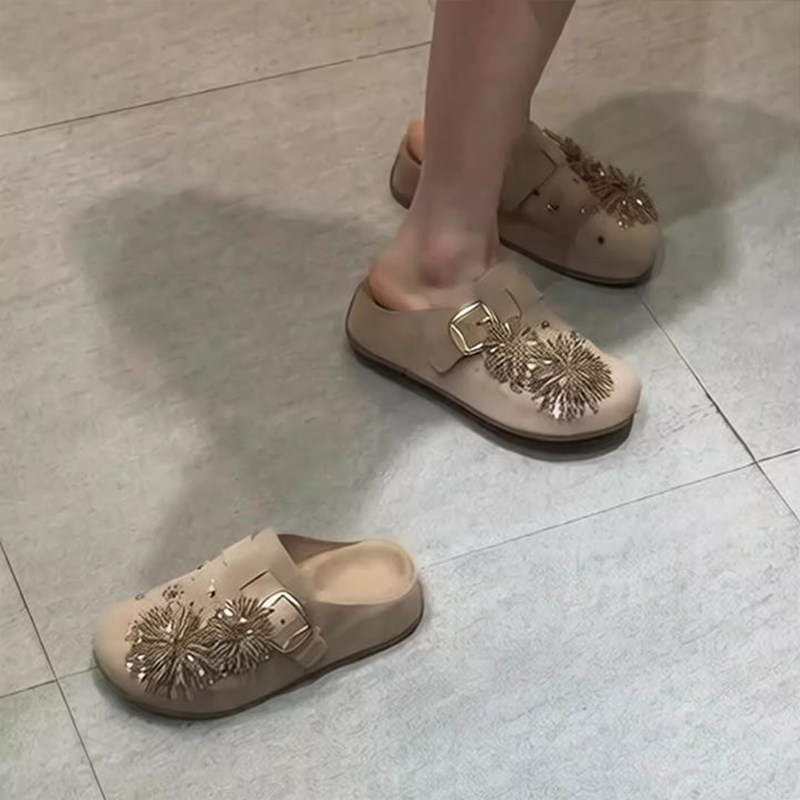 绝美水钻勃肯鞋女2026春夏季新款内增高包头半拖鞋一脚蹬外穿复古