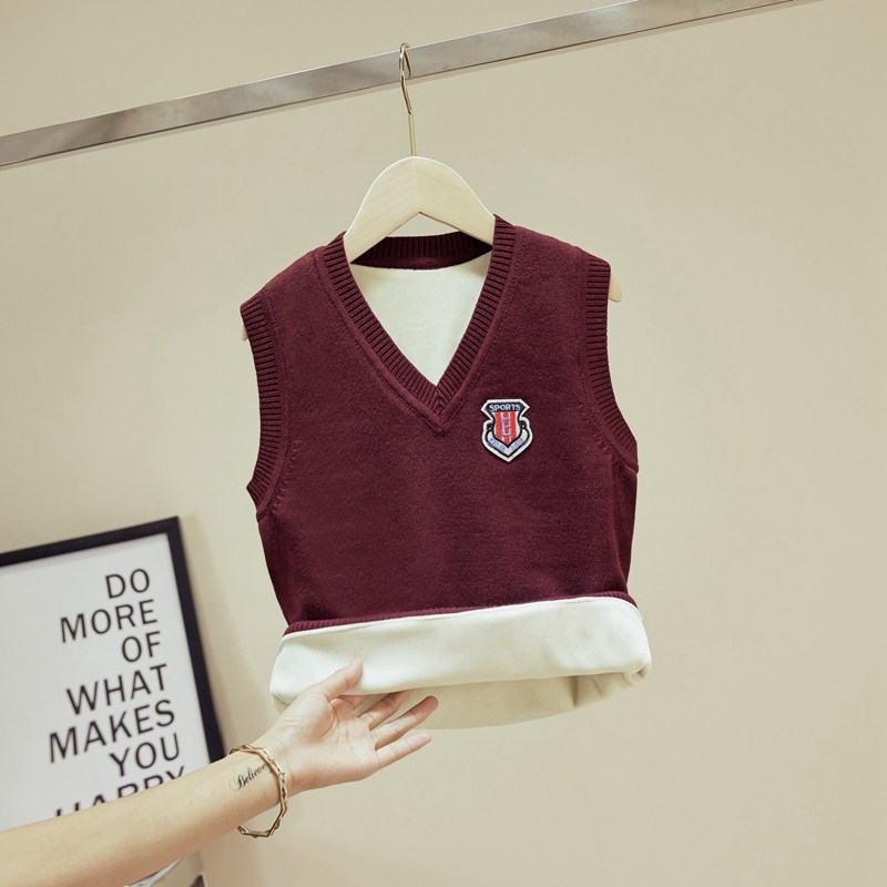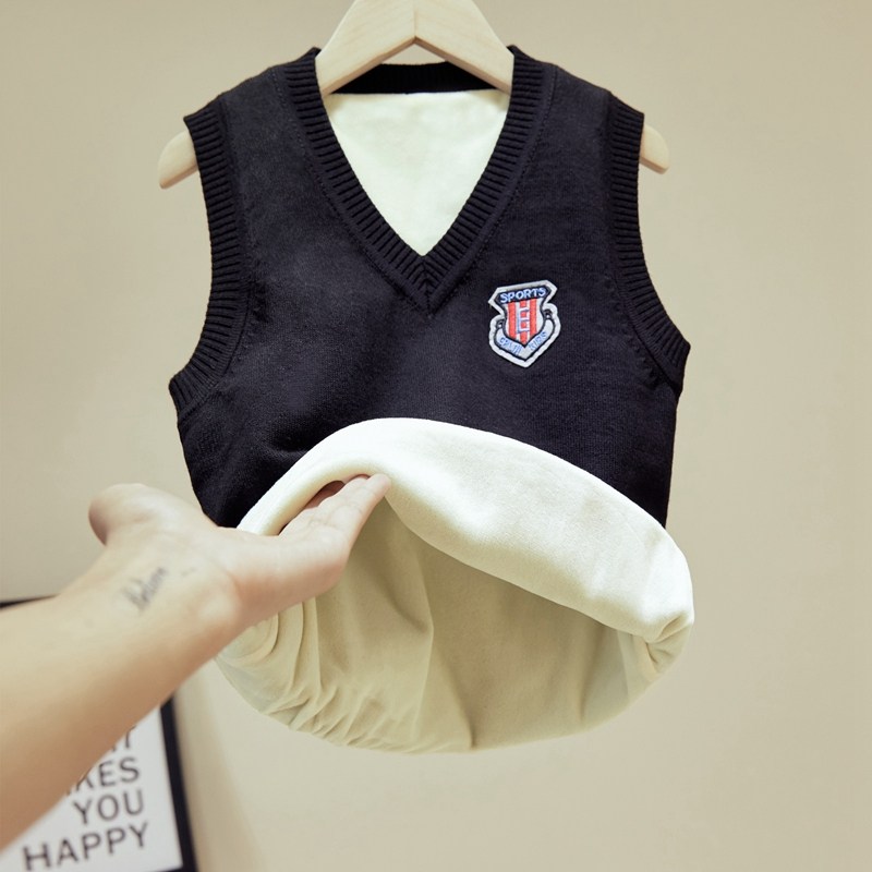 儿童马甲秋冬季加厚加绒男童毛线背心女童宝宝针织毛衣中大童马夹