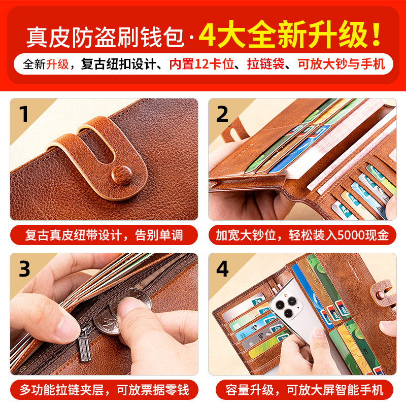 复古头层牛皮钱包男高端真皮长款简约大容量2026新款男式商务钱包