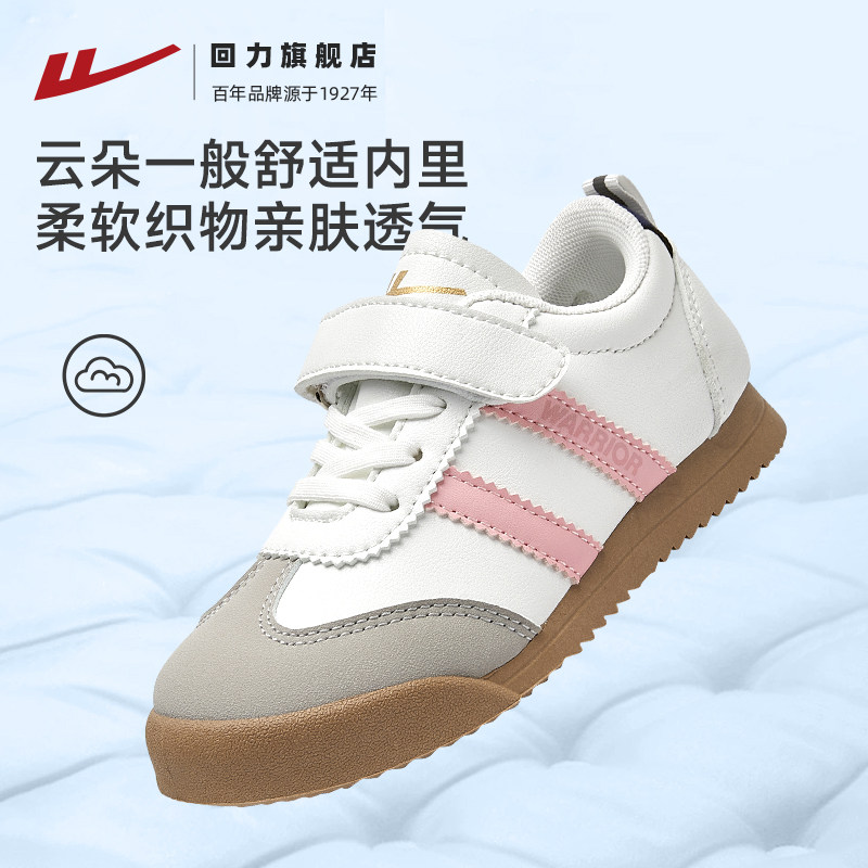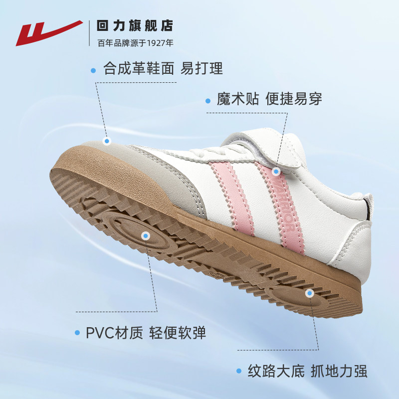 回力童鞋女童德训鞋春季新款儿童魔术贴校园鞋女孩轻便休闲运动鞋