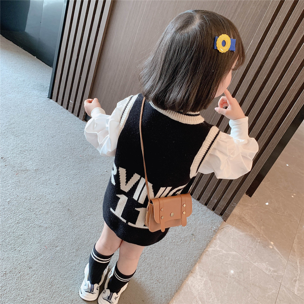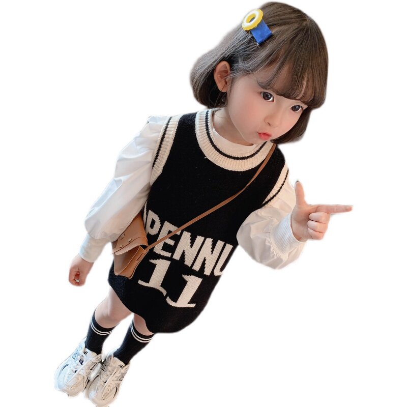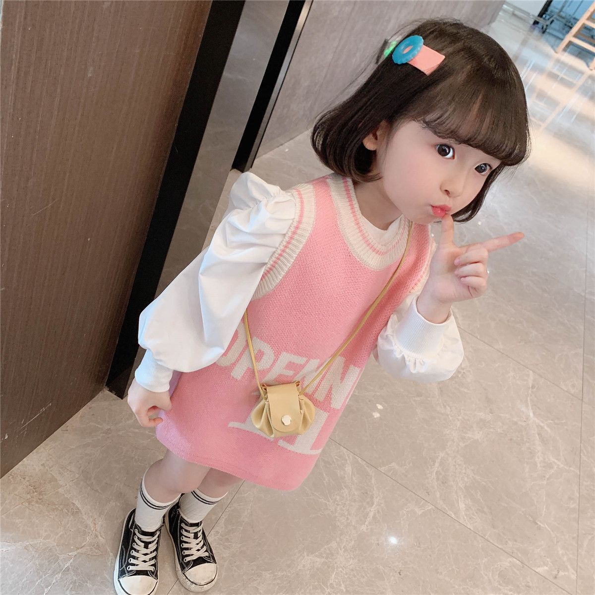 女宝宝套装韩范女童背心裙运动小童马甲连衣裙针织毛衣春秋两件套