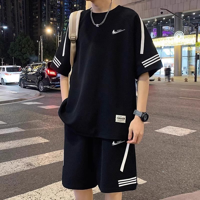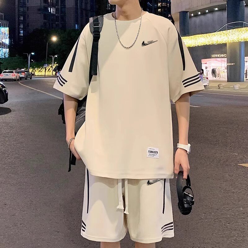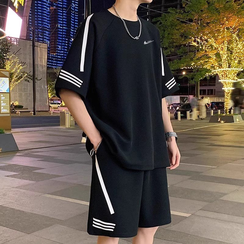 耐克顿运动套装男士夏季新款ins潮流搭配篮球服青少年帅气两件套