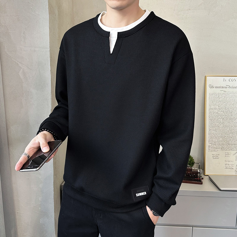 设计感假两件男士卫衣无帽长袖t恤春秋季潮牌休闲百搭男款上衣服