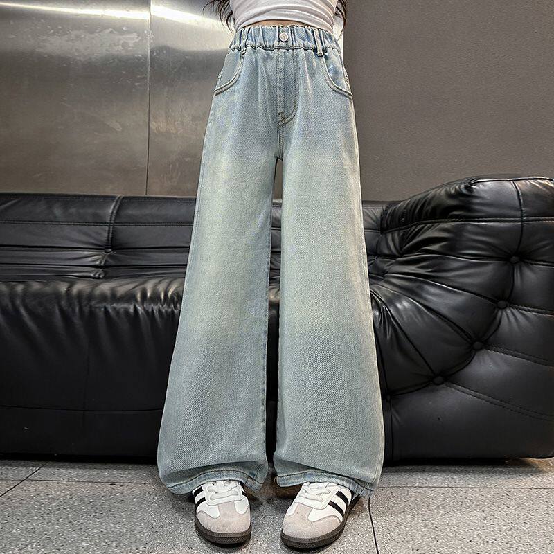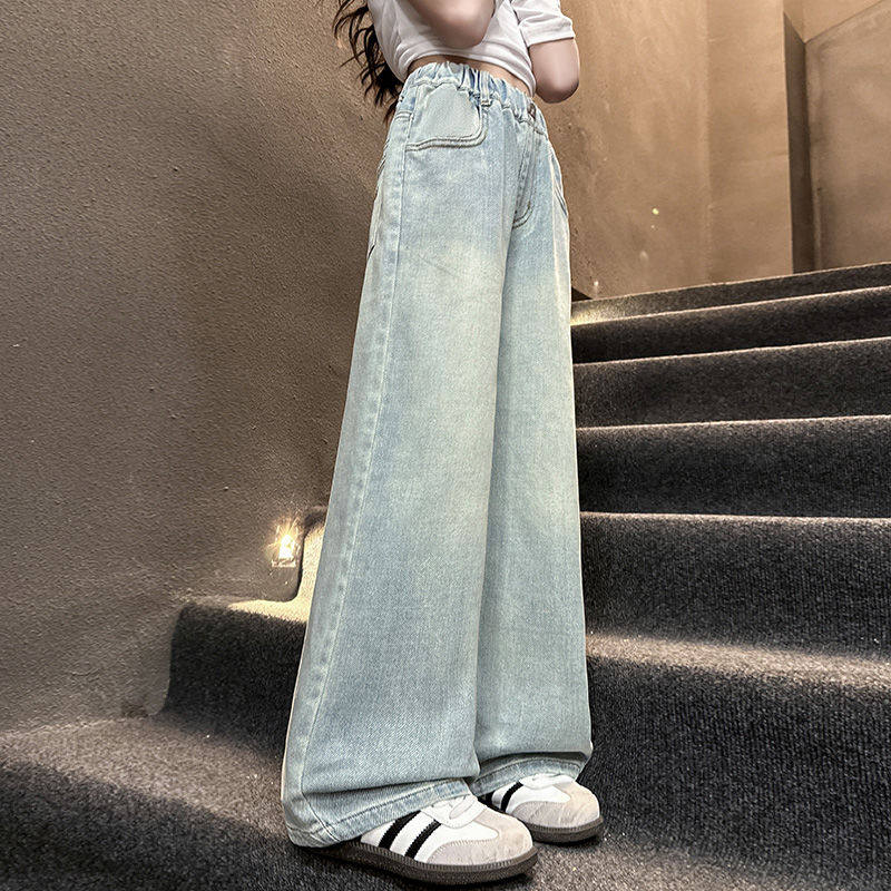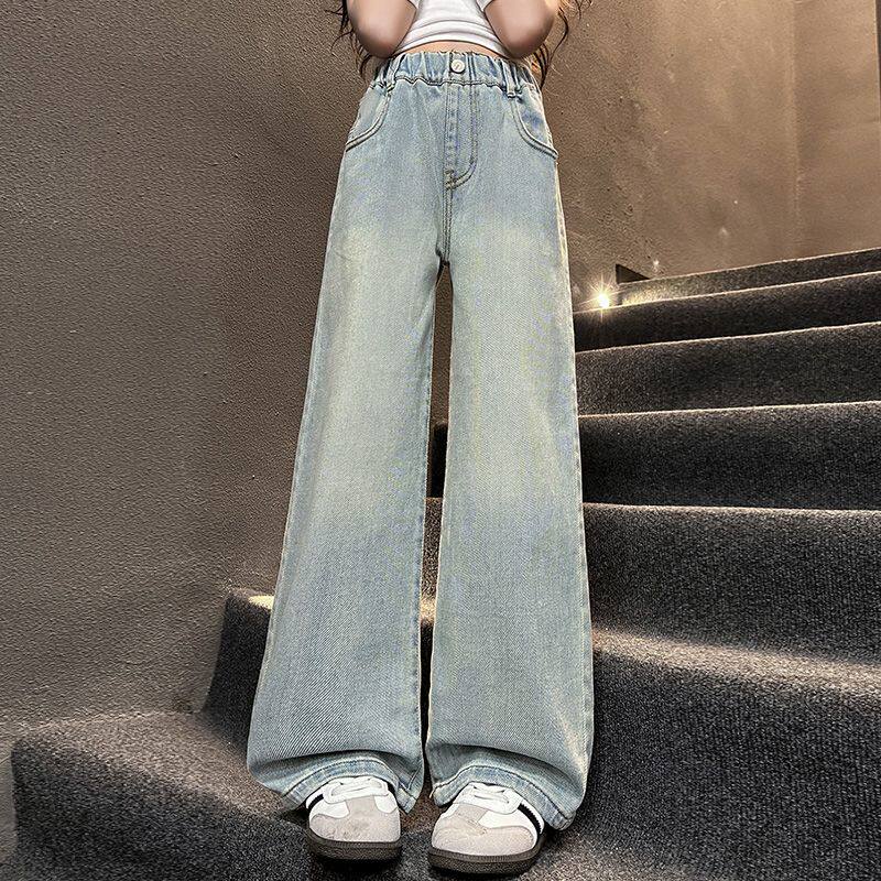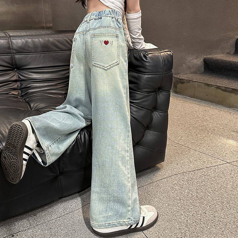女童直筒牛仔裤春秋2026新款春装儿童阔腿裤女孩大童裤子初中学生
