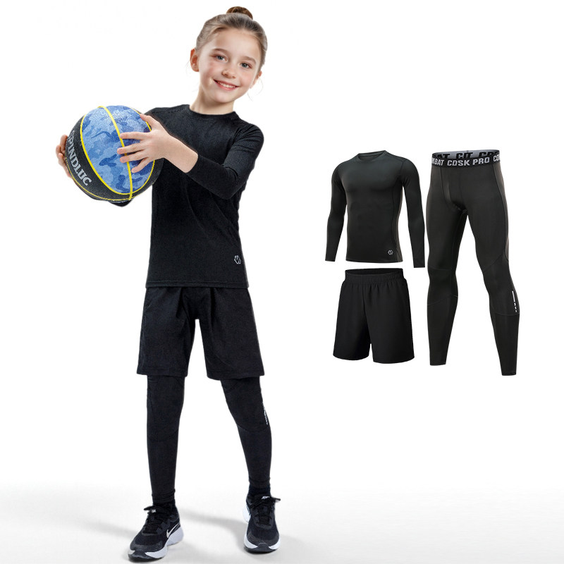 儿童紧身衣训练服速干打底长袖上衣女童瑜伽篮球运动健身衣套装