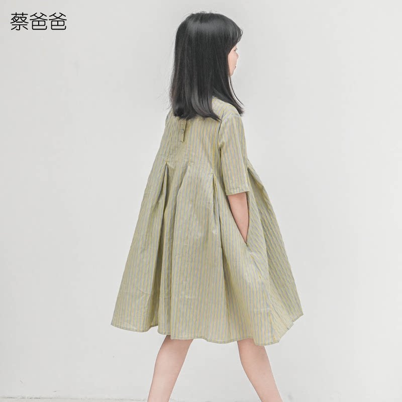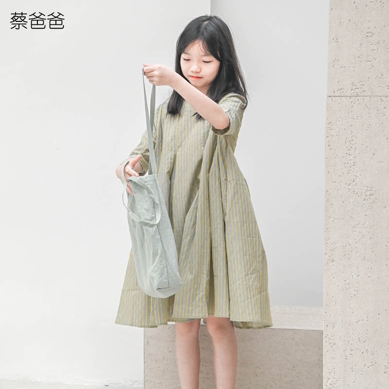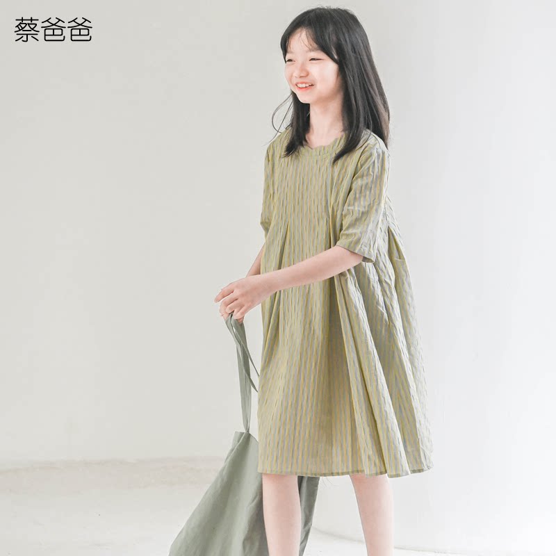 蔡爸爸童装女童小清新早春装2026新款中大童条纹连衣裙肌理感667