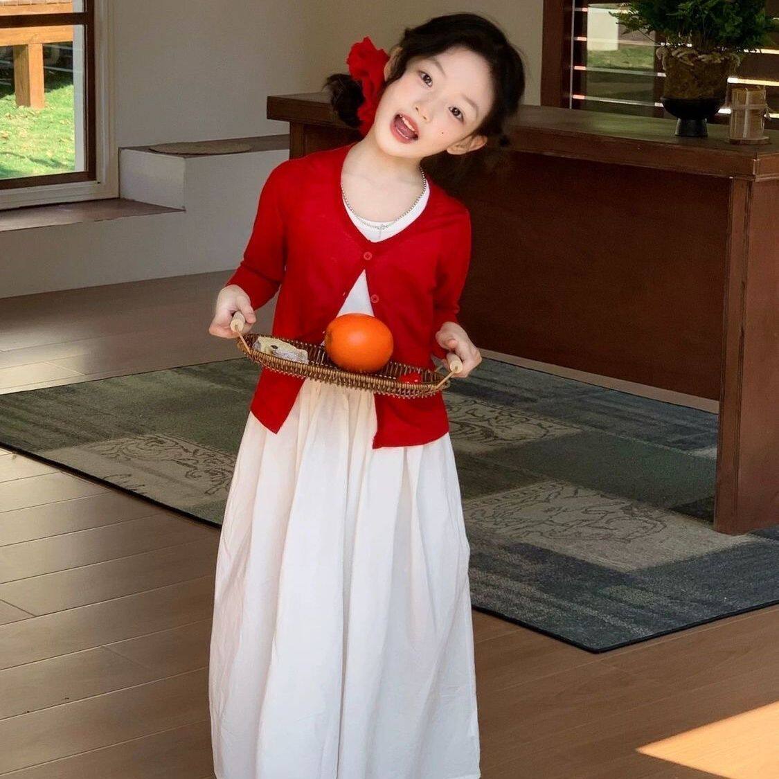 女童中大童早春新款套装宝宝开衫长袖连衣裙儿童洋气两件套公主裙
