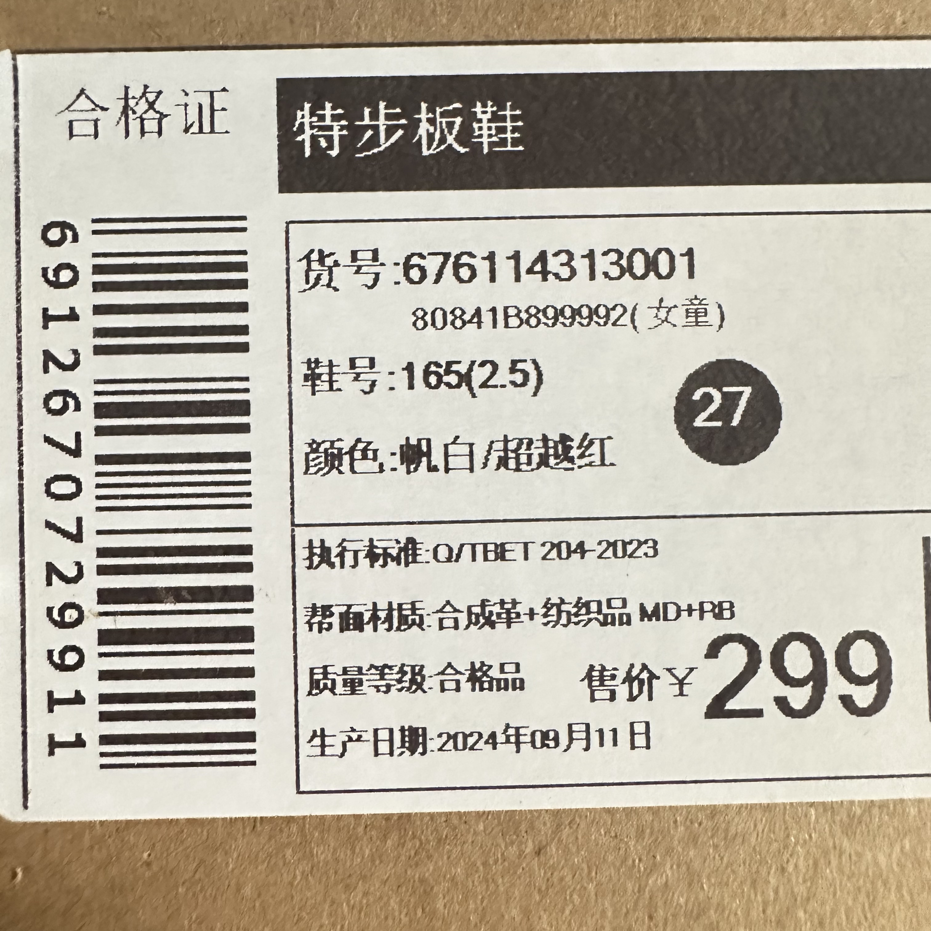 品牌:XTEP/特步
