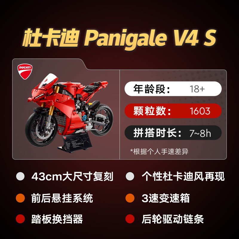 LEGO乐高42202杜卡迪 Panigale v4 s摩托车男孩拼搭益智积木玩具