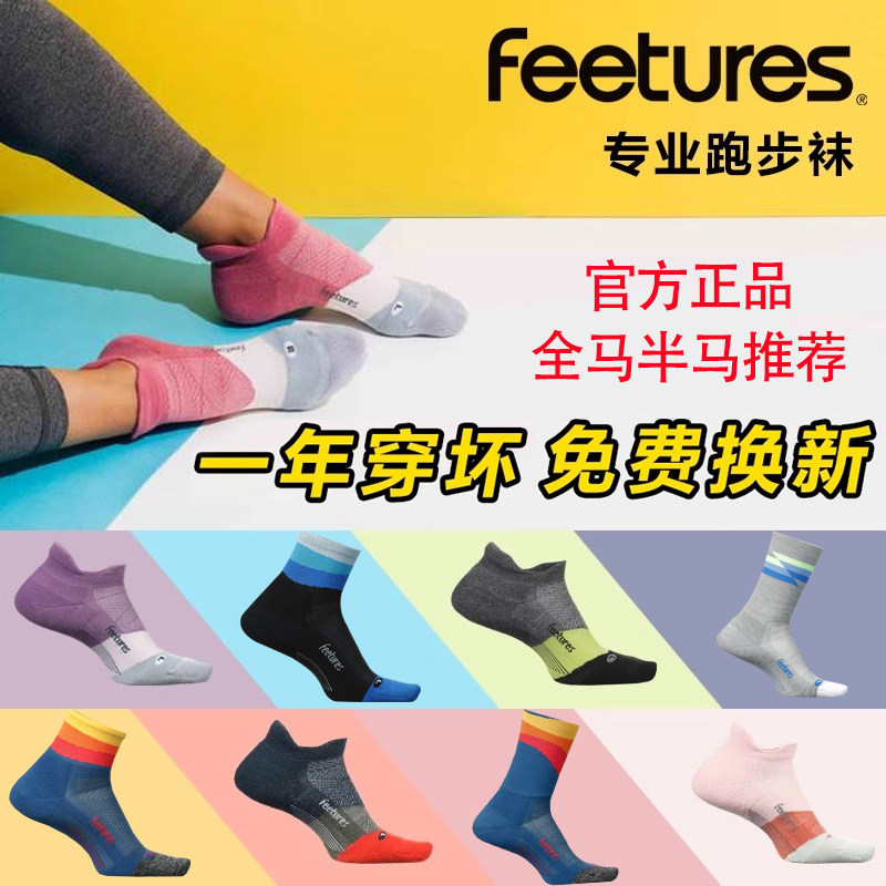 美国feetures飞鹊跑步袜专业马拉松越野运动袜男女短中长筒袜子