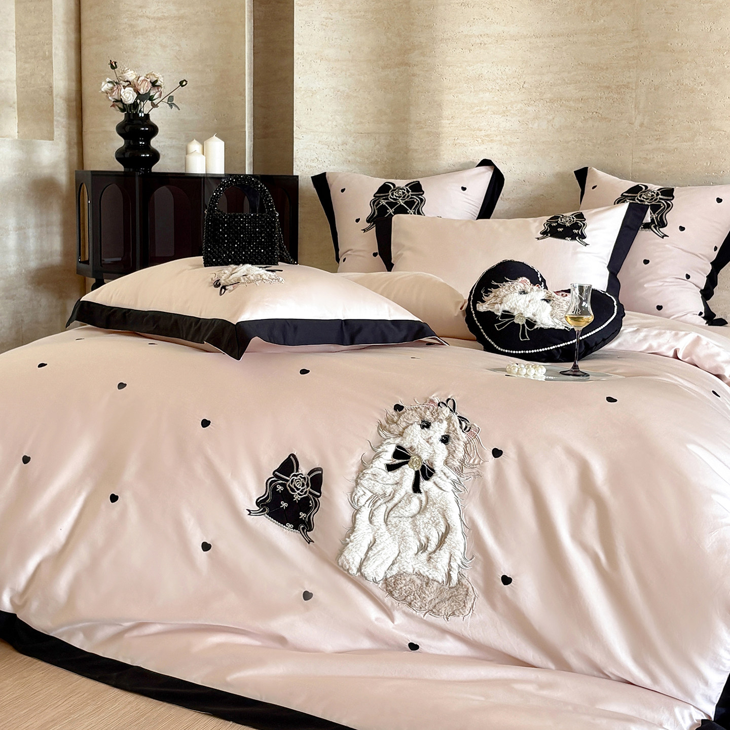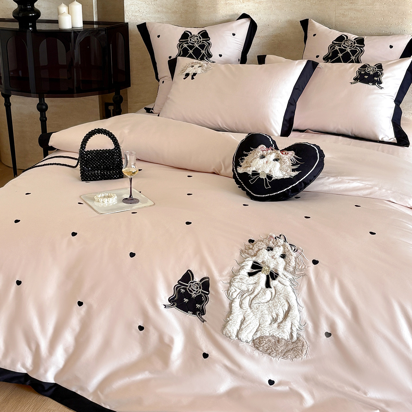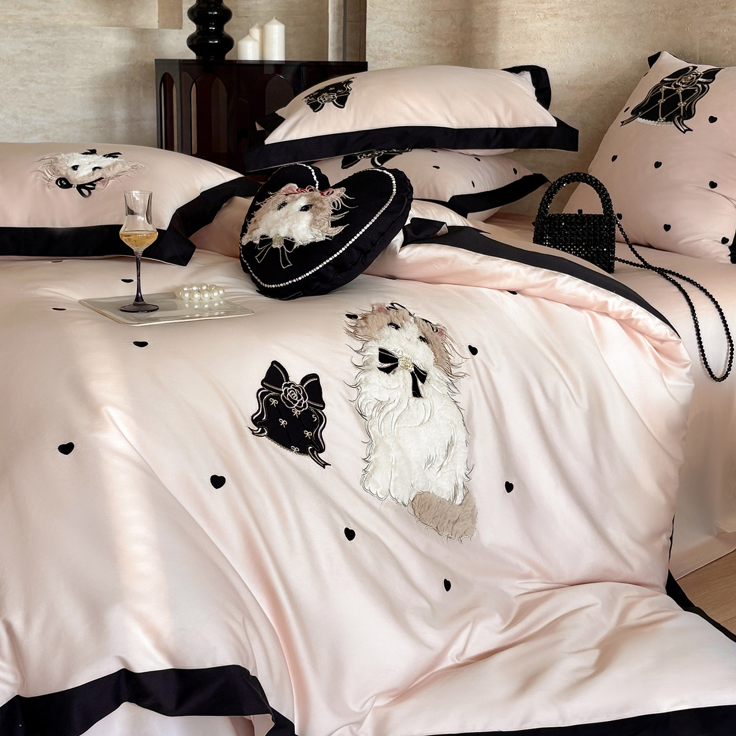 卡通少女心纯棉长绒棉床上四件套全棉刺绣被套床单儿童高级感床品