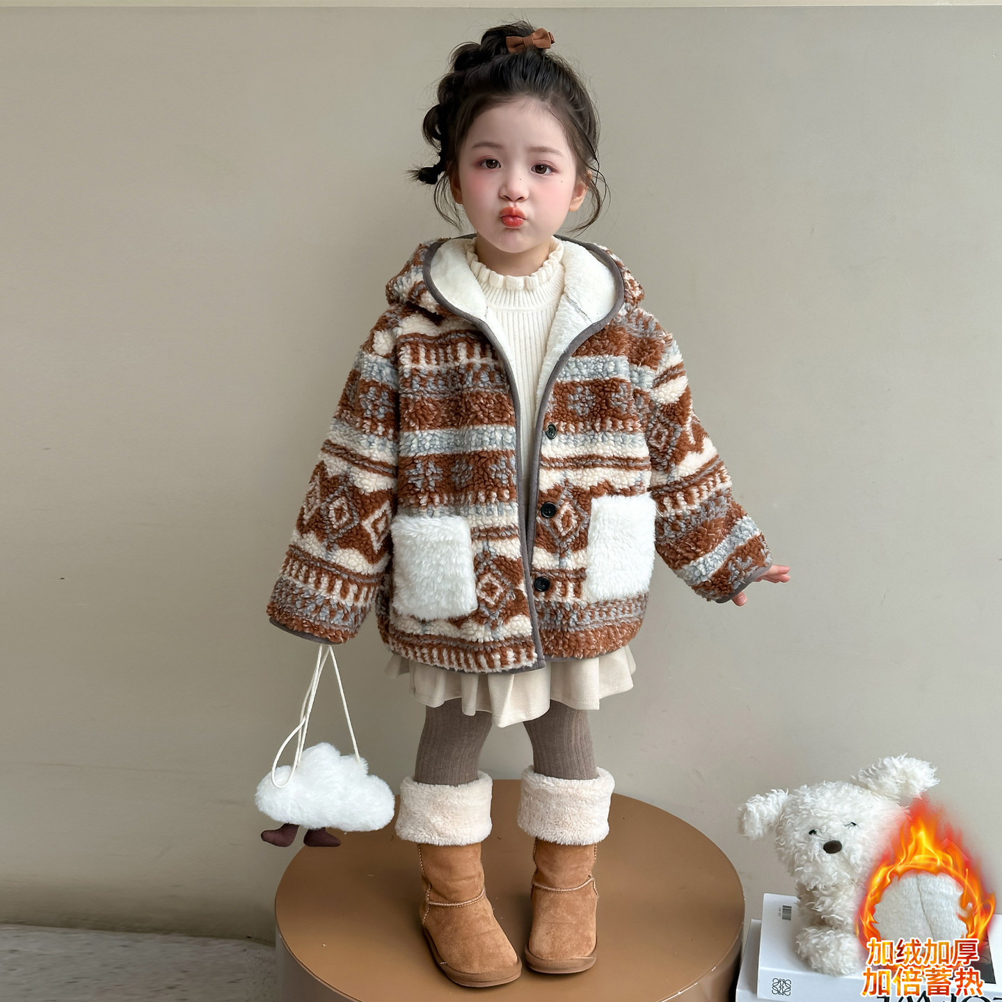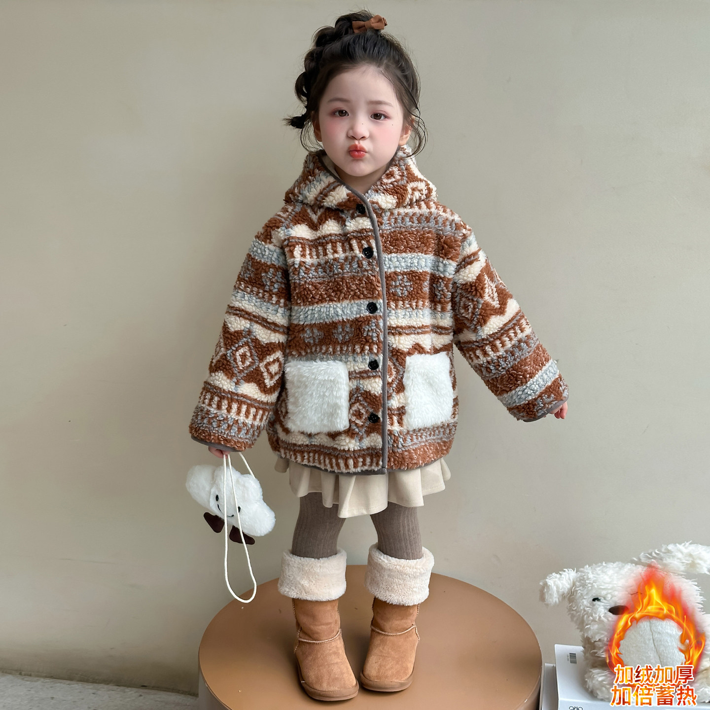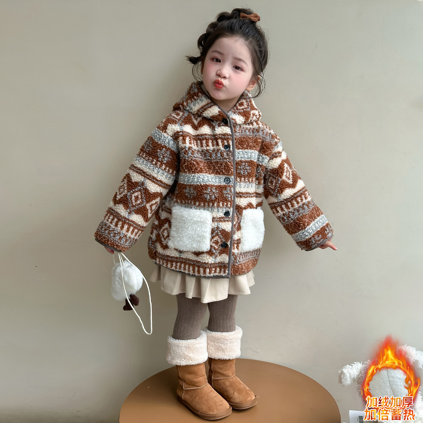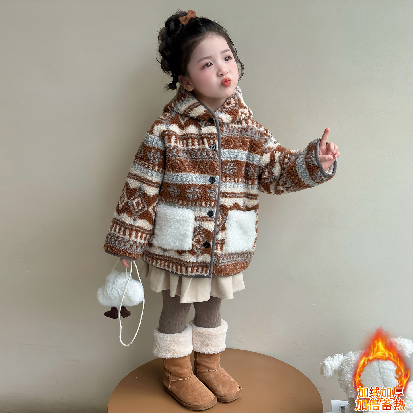 女童加绒外套2026秋冬款儿童超好看洋气加厚毛毛衣女宝宝冬季上衣