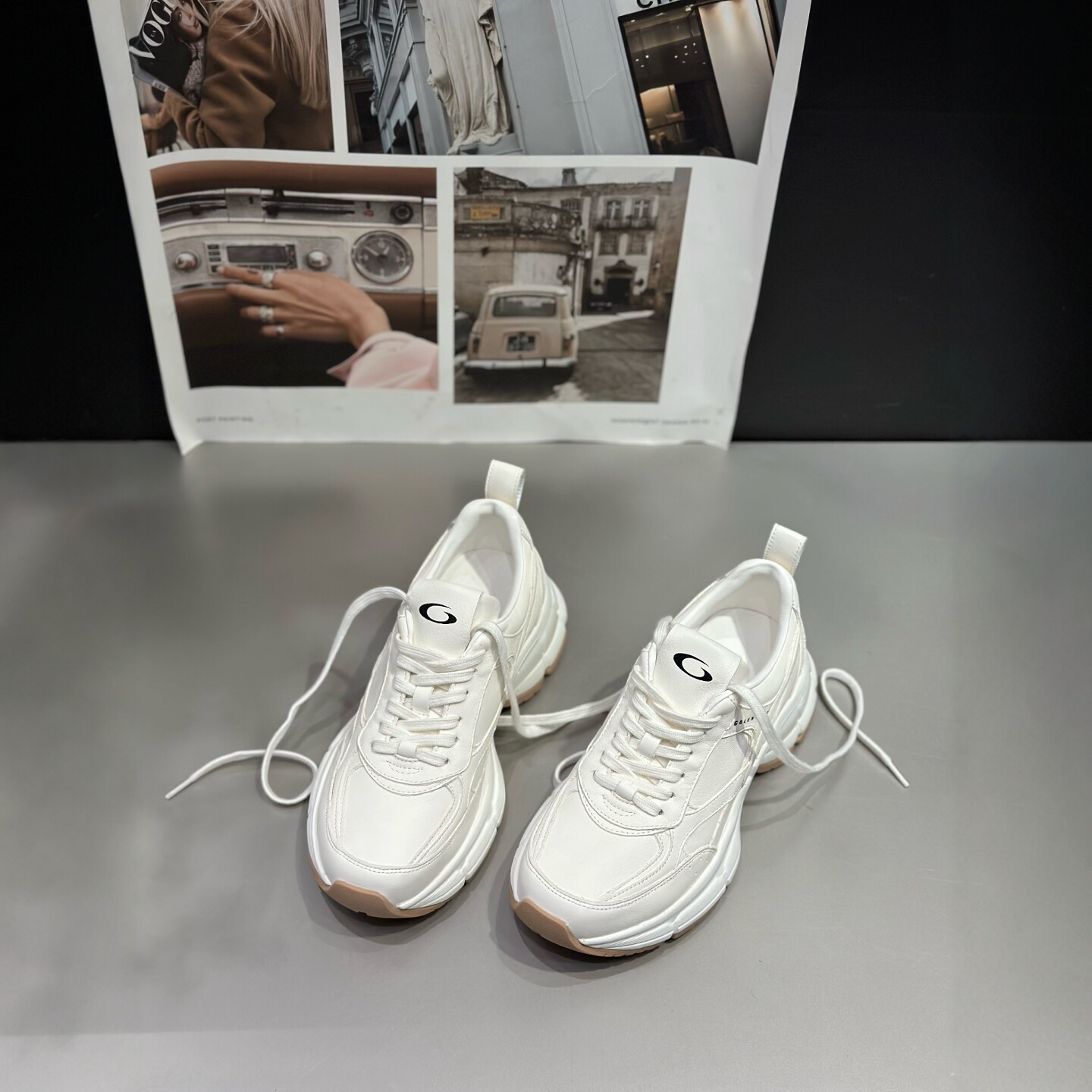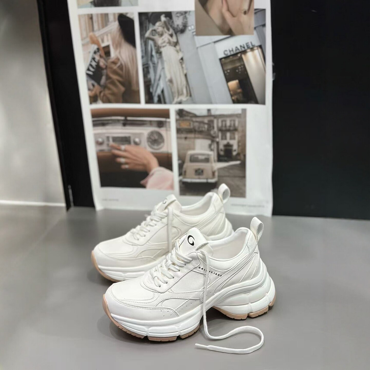 IDO春款2026新款女鞋秀气真皮白色老爹鞋女轻便软底超轻休闲鞋女