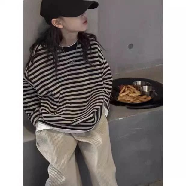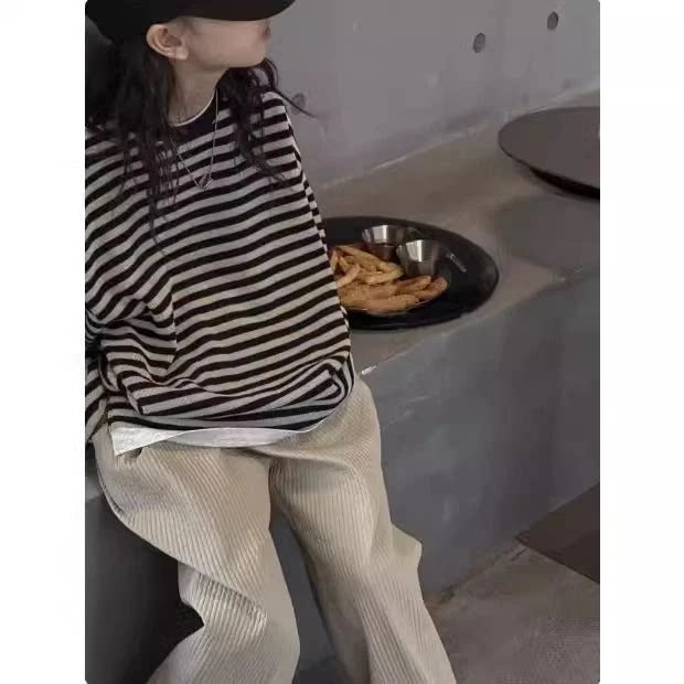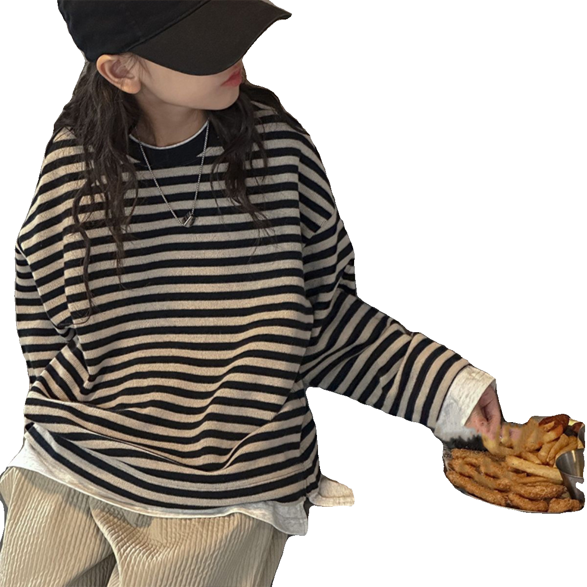 女童卫衣春秋款2026新款儿童洋气春装长袖T恤女大童条纹春季上衣