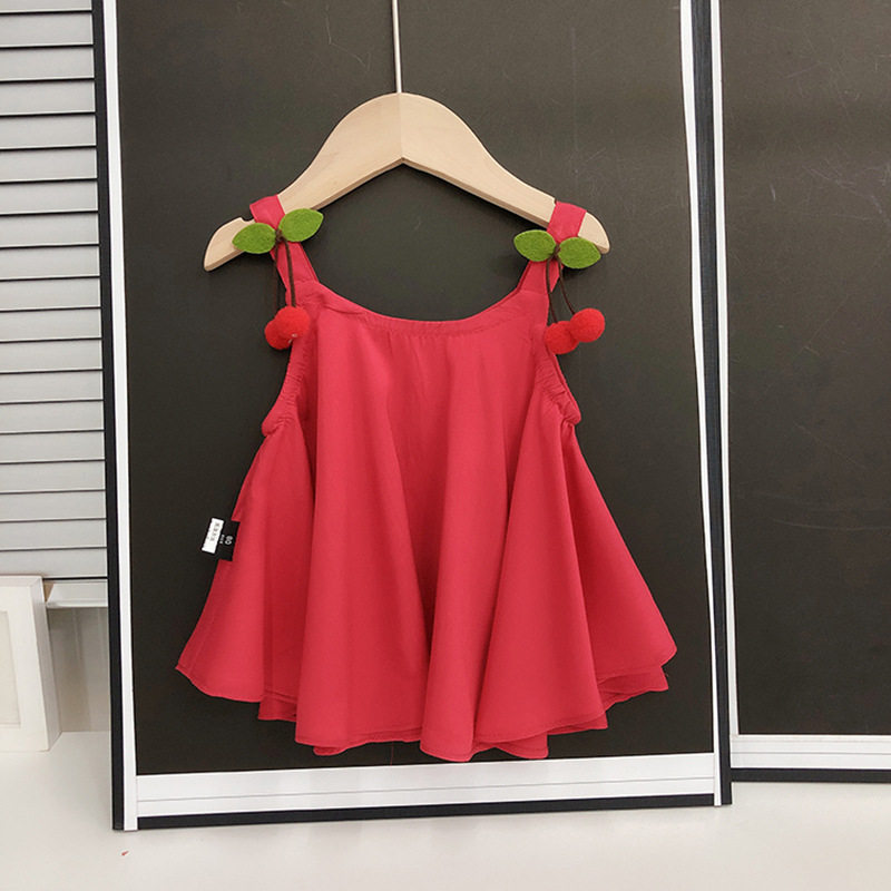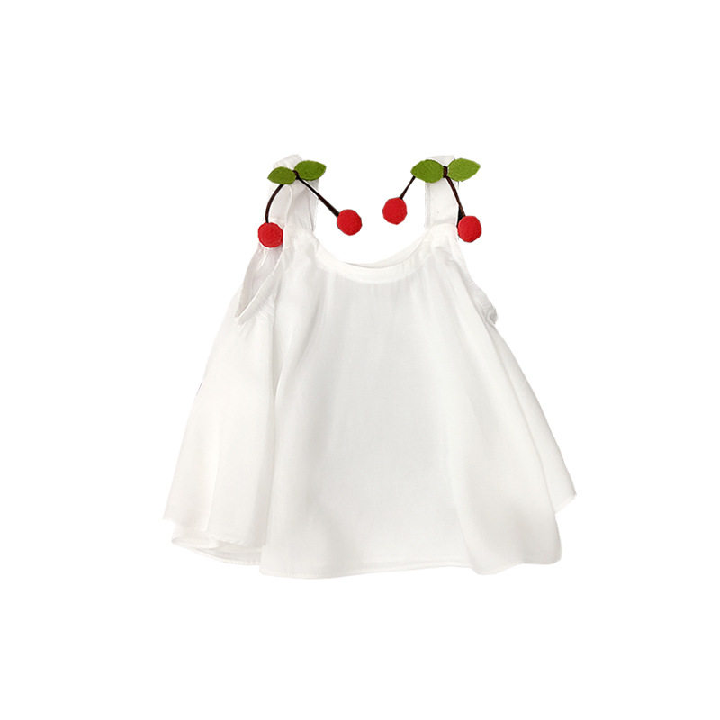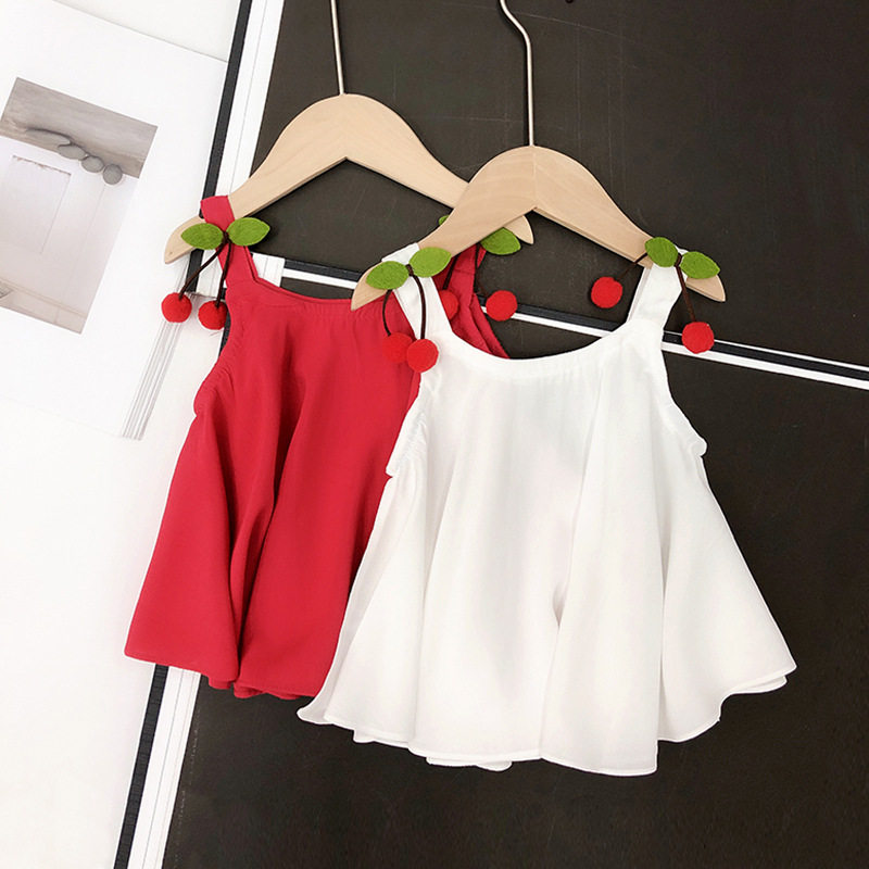 女童洋气小吊带外穿宝宝白色吊带女童女孩夏天无袖樱桃绵绸上衣