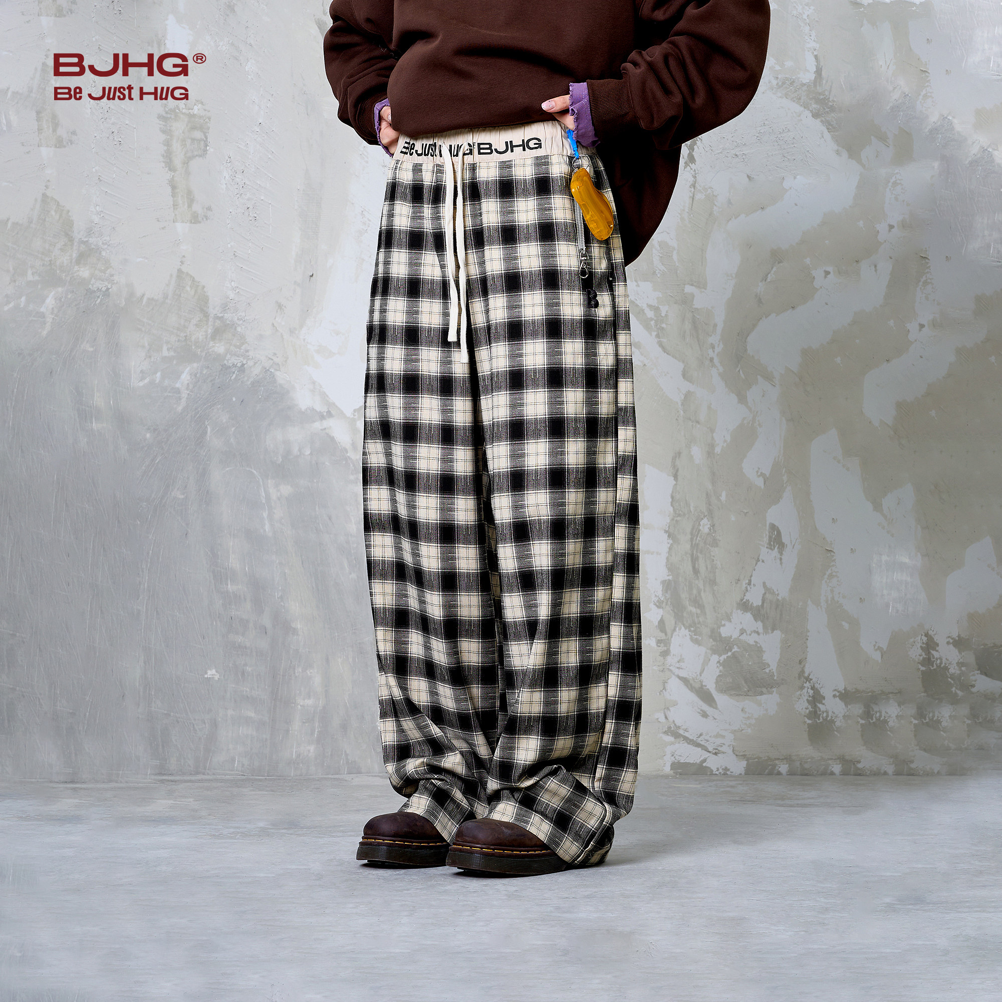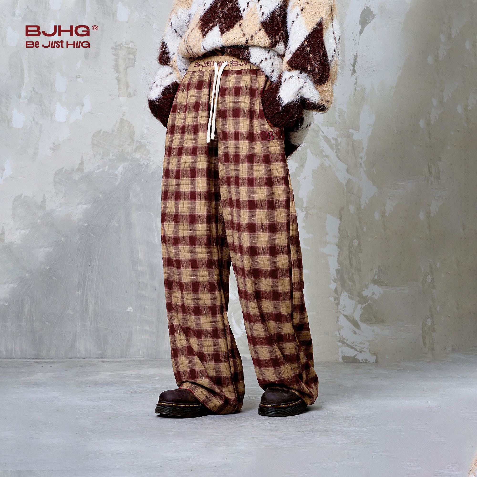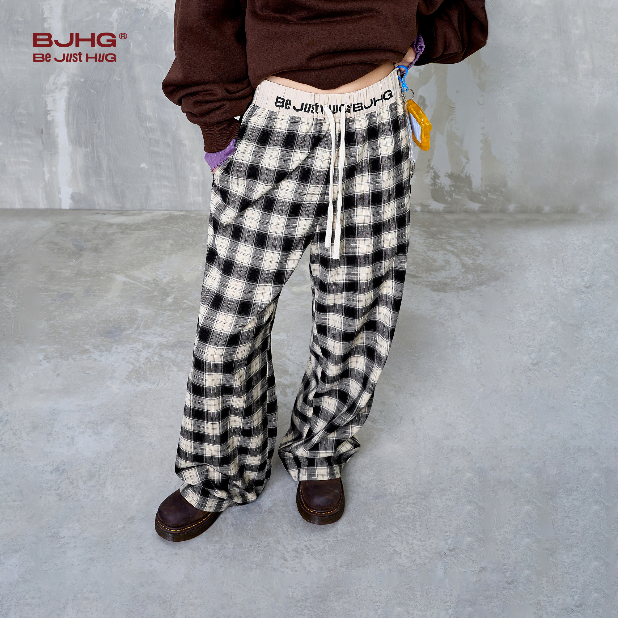 BJHG不计后果圣诞格子裤休闲裤子女款春季新款美式宽松情侣休闲裤