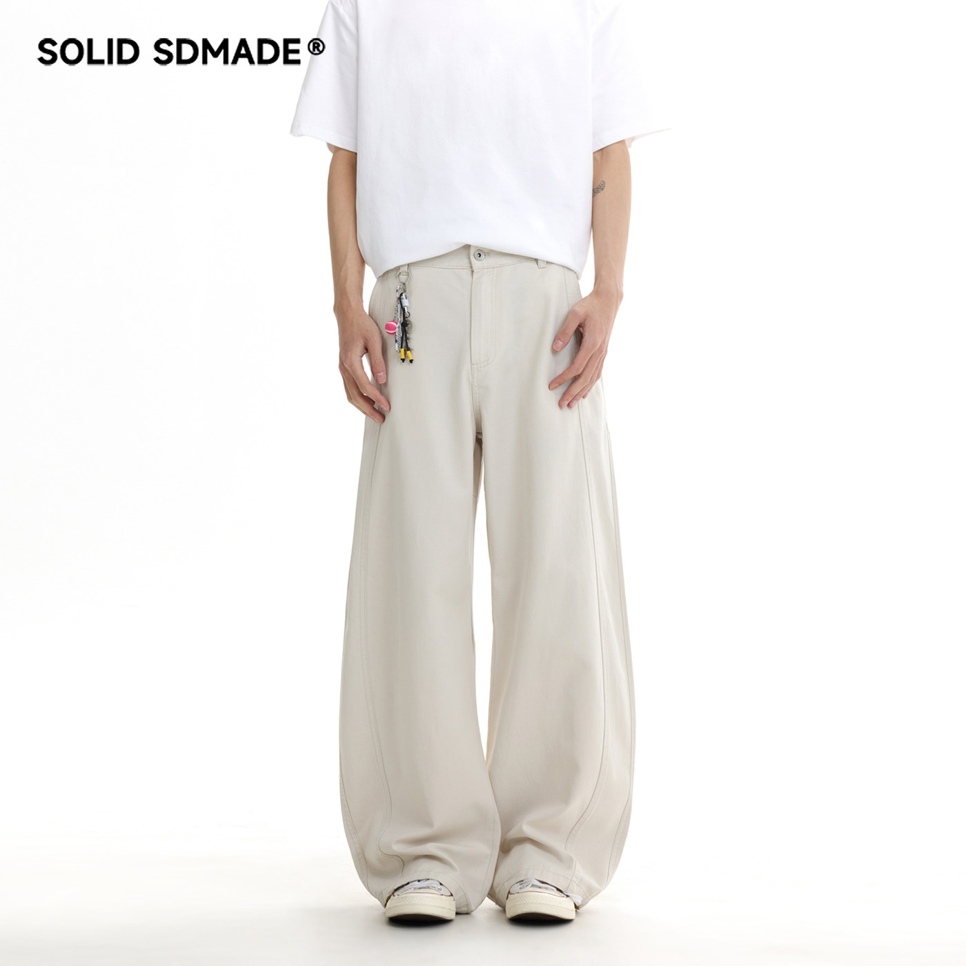 SOLID SDMADE 莱塞尔A字阔腿裤子男女款春季宽松垂感拖地休闲长裤