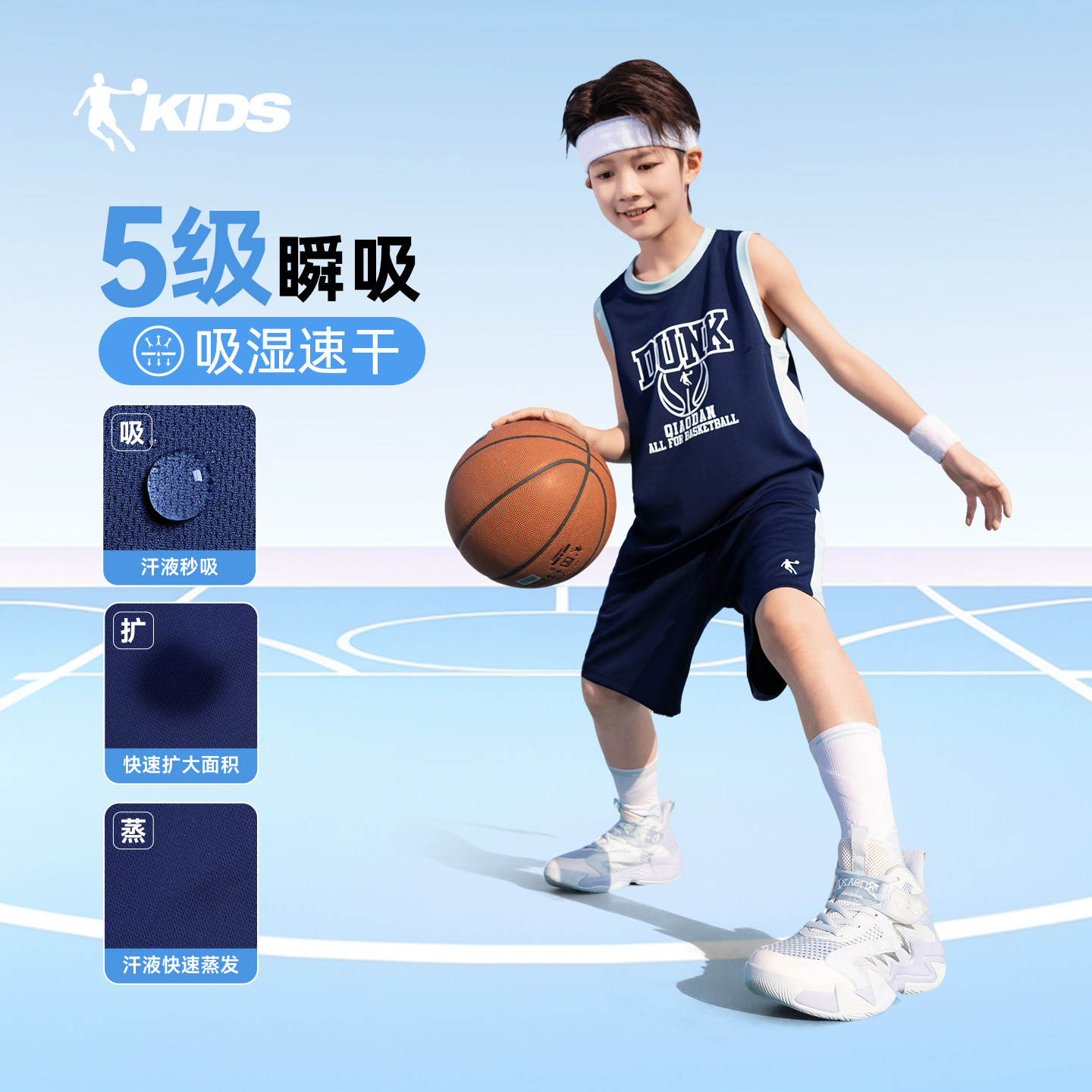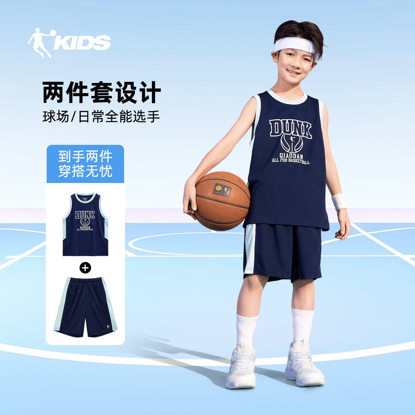 乔丹儿童装男童篮球服速干套装春装2026春夏季新款运动服背心球服