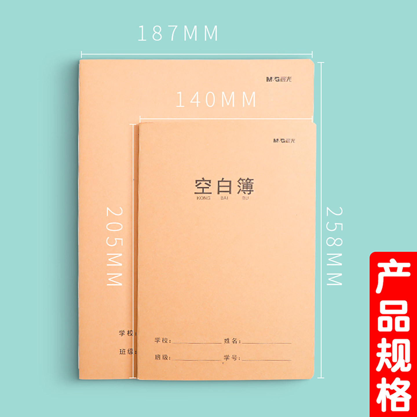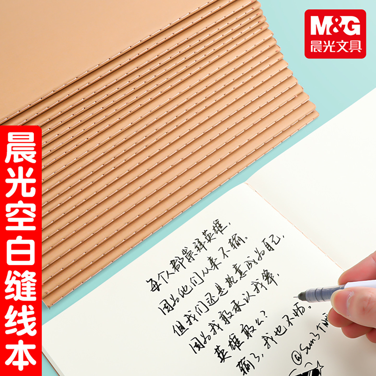 晨光A5空白本牛皮纸笔记本可平摊绘画做笔记16K大号练习草稿纸本