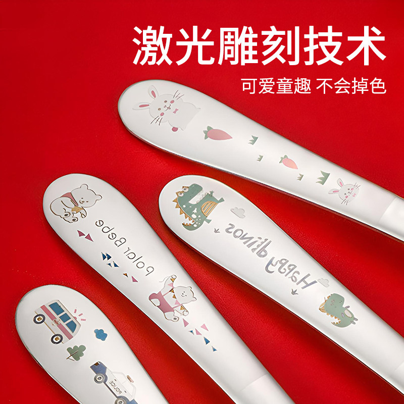 儿童外出餐具便携套装304不锈钢宝宝叉勺吃饭专用元宝辅食勺长柄