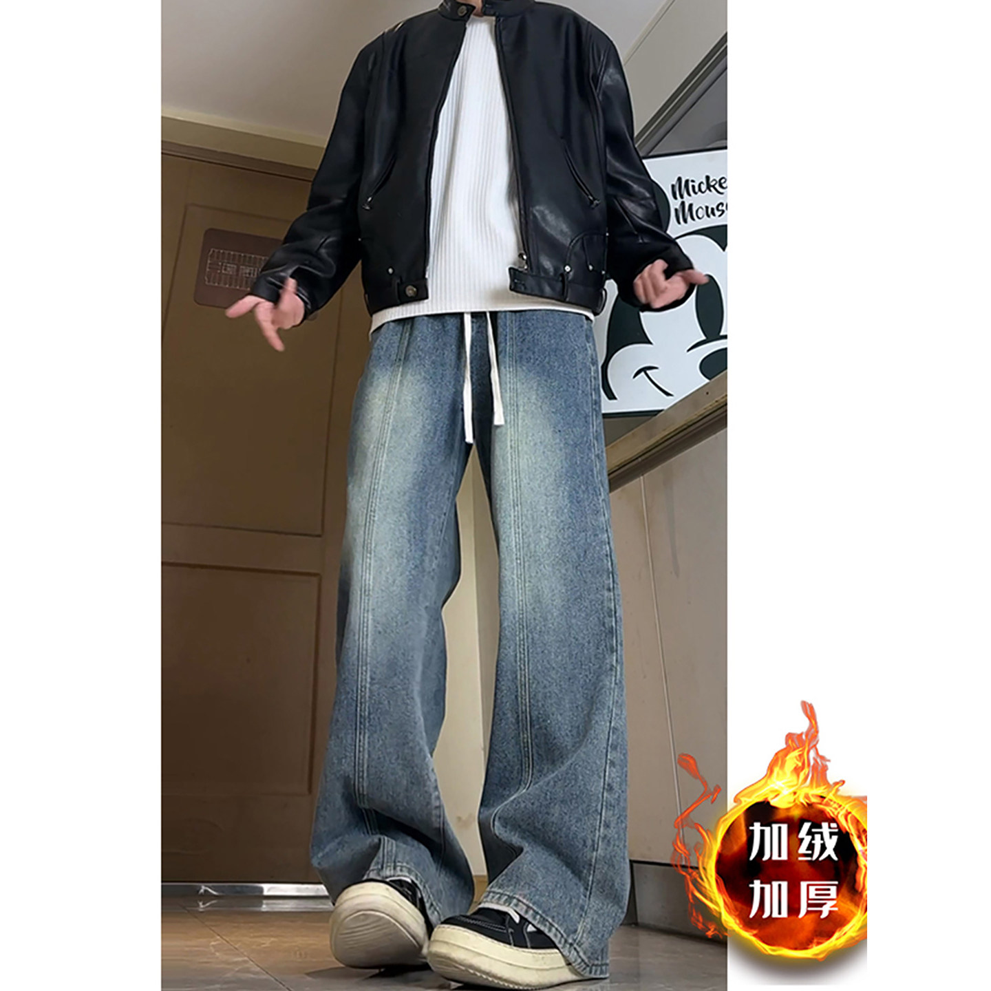 cleanfit黑色牛仔裤秋冬季男生加绒显瘦显高裤子青少年酷帅直筒裤