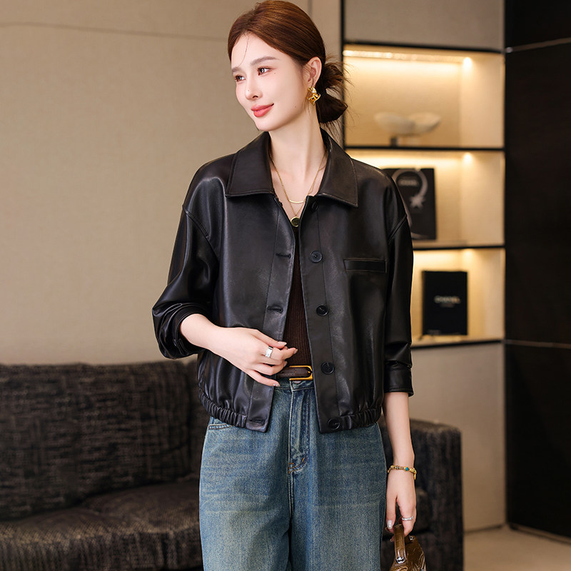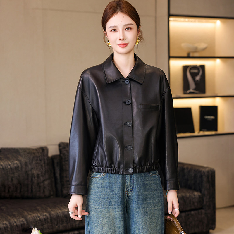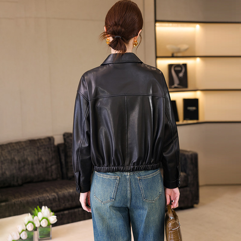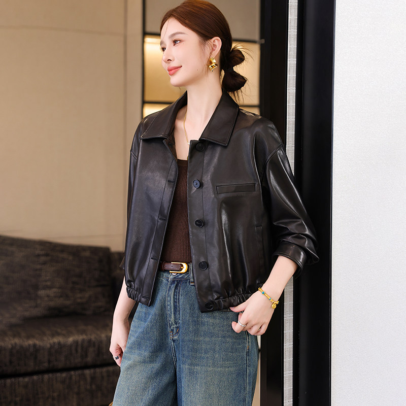 卡若维娅高级感海宁真皮皮衣女黑色绵羊皮夹克小个子休闲短款外套