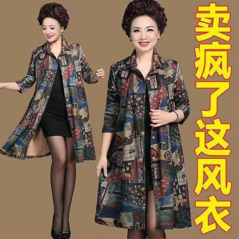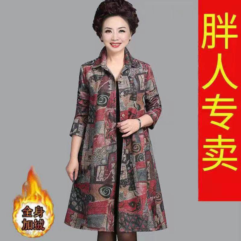 秋冬新款大码女装胖mm加厚加绒中长款衬衫翻领外套200斤印花风衣